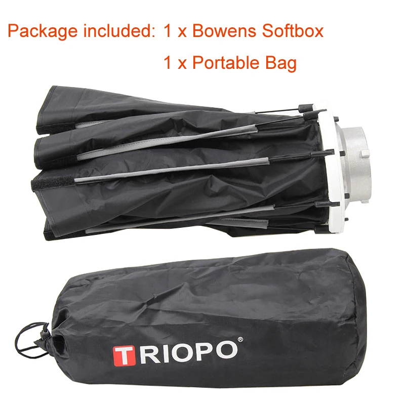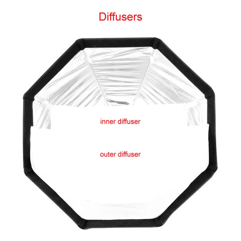 1. Внутри с отражающим серебром и поставляется с передним полупрозрачным диффузором, отлично подходит для speedlite, monolight, strobe или slave.