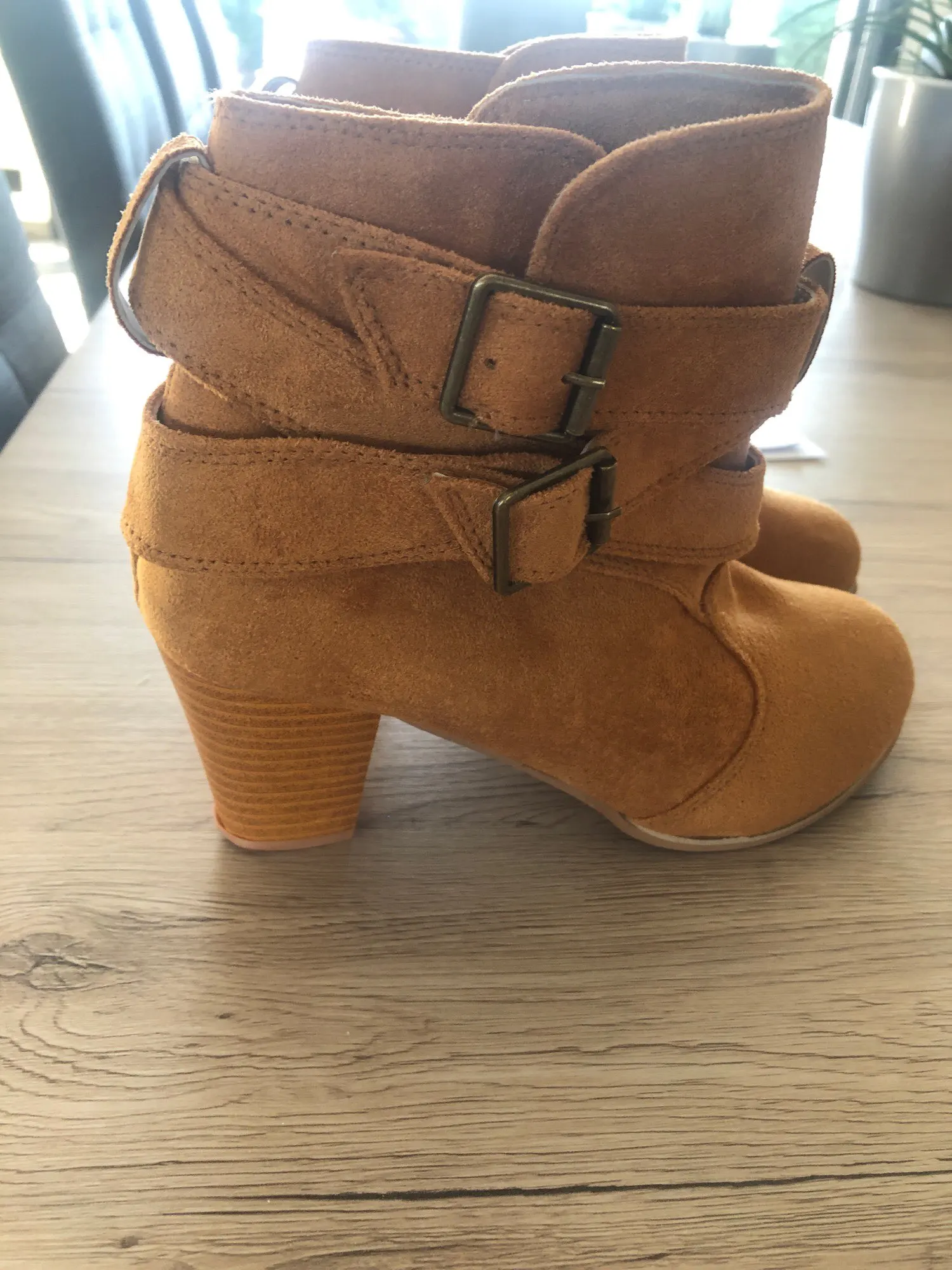 Я ценю 40 за 38/39, но 39 было бы лучше, с парой носков большего размера, это сделает трюк. Ботильоны красивые и удобные. Они сильно пахнут клеем, но нет ничего неприятного.