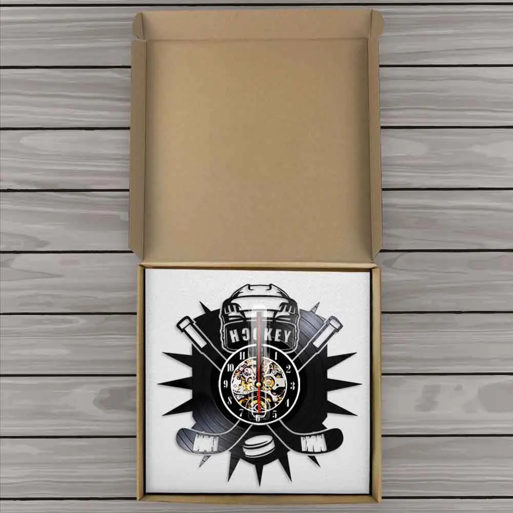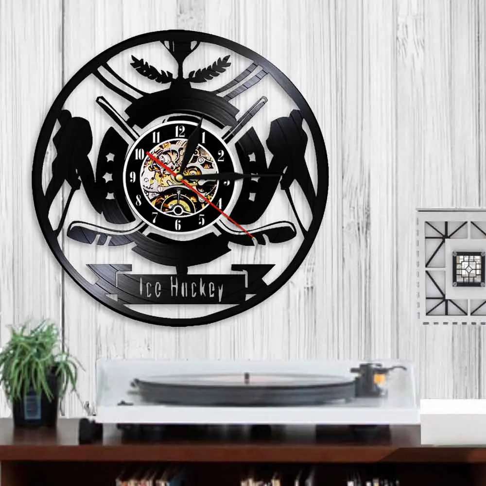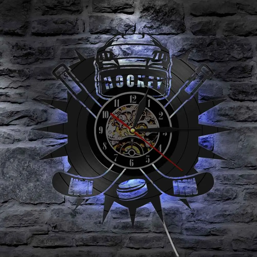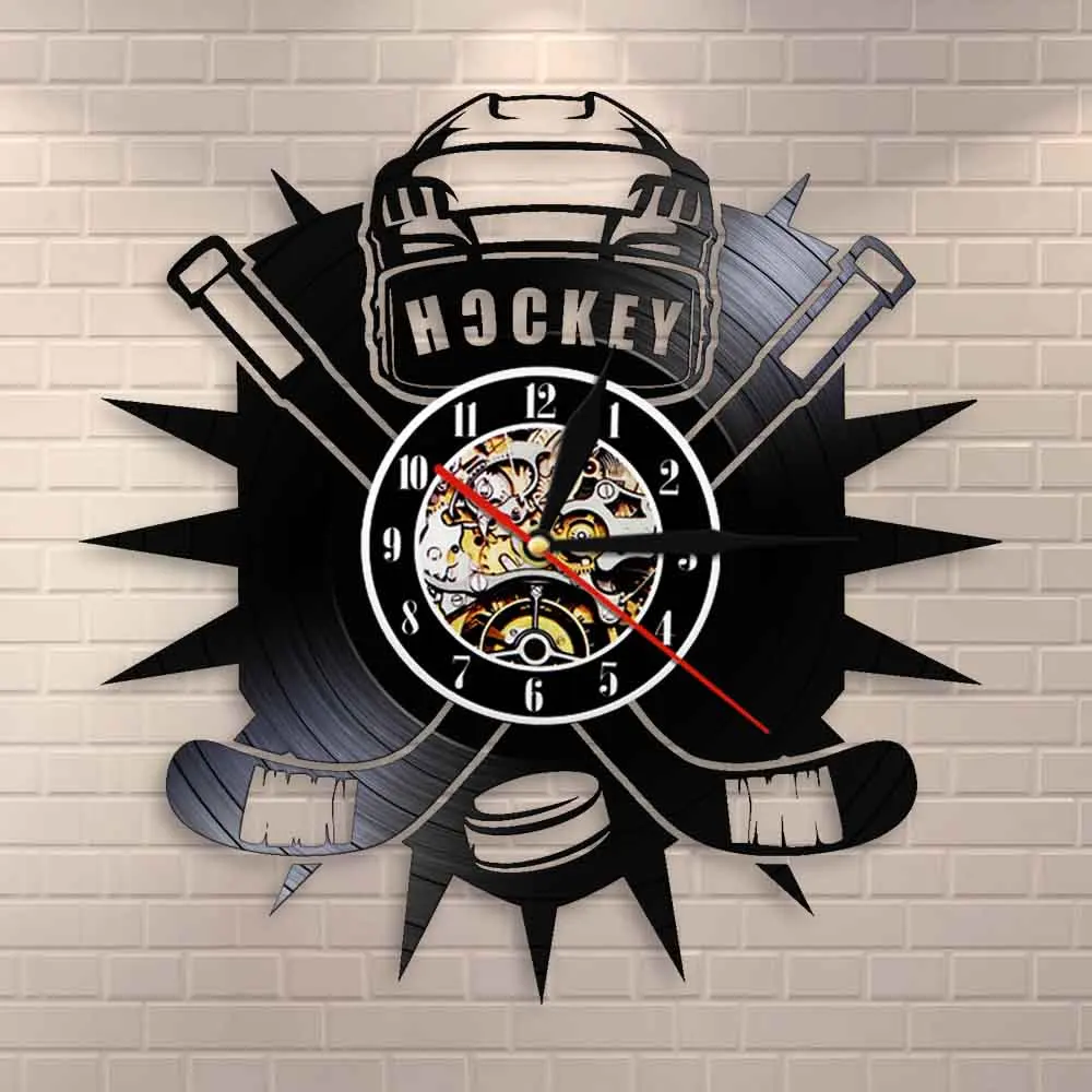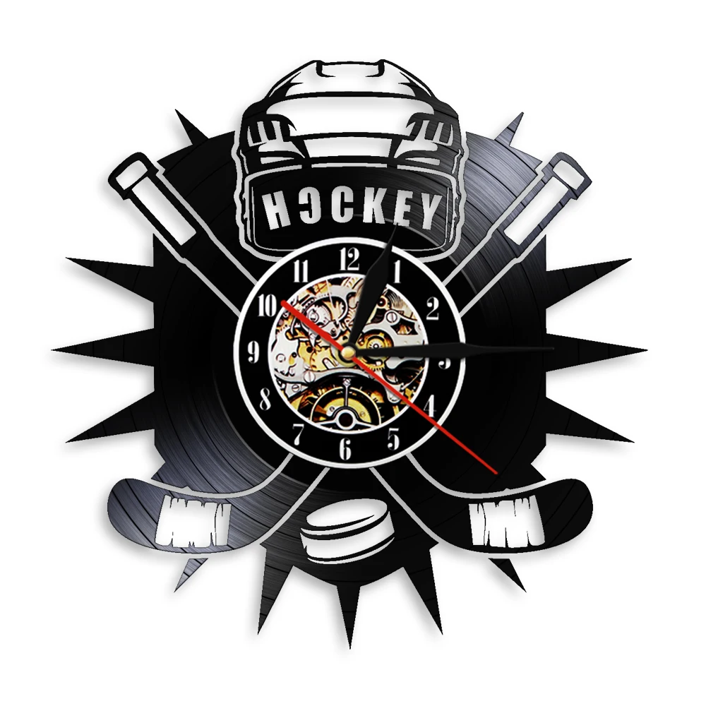 Настенные часы с виниловой пластинкой и надписью хоккеиста, с логотипом команды спортивного клуба, настенные художественные часы, современный дизайн, домашний декор