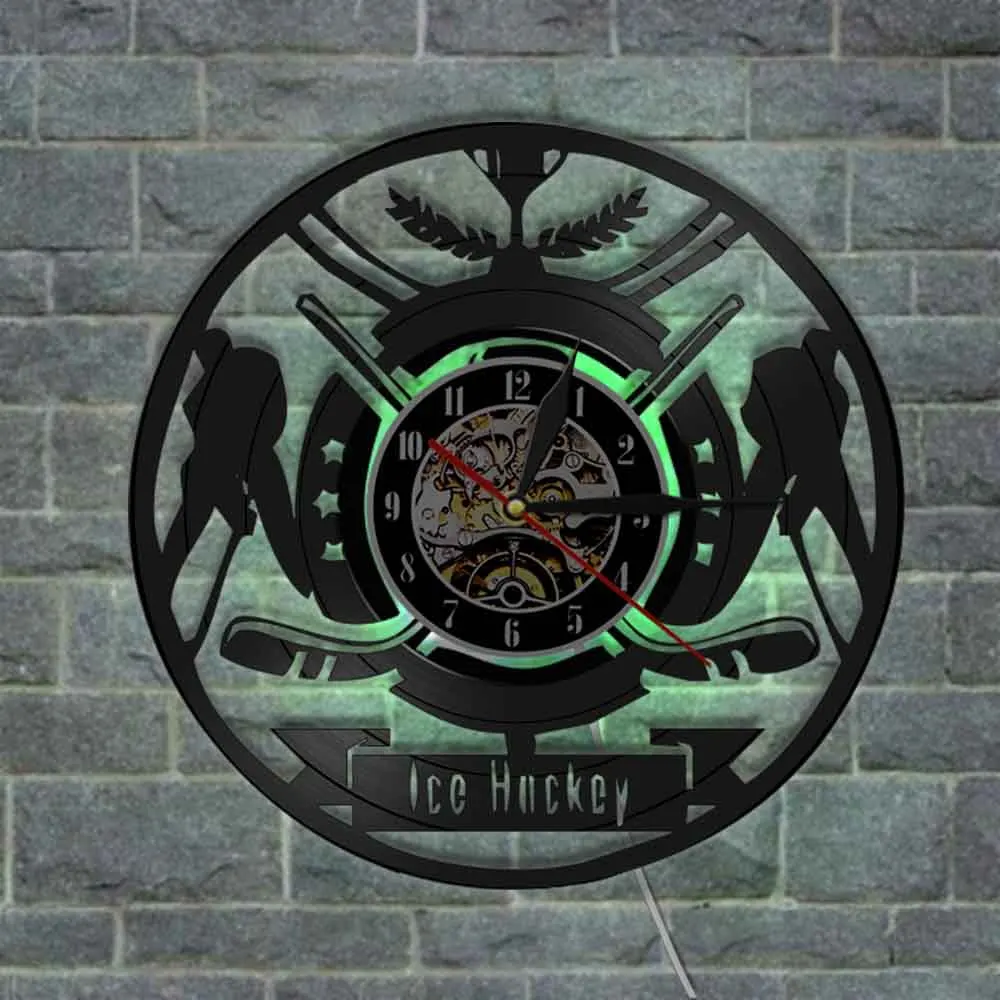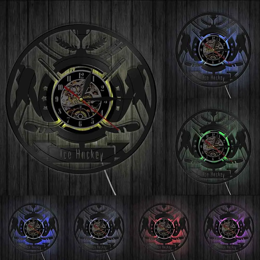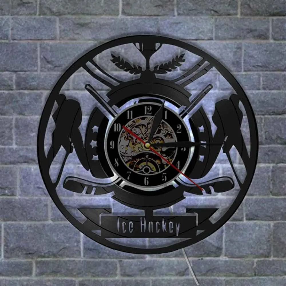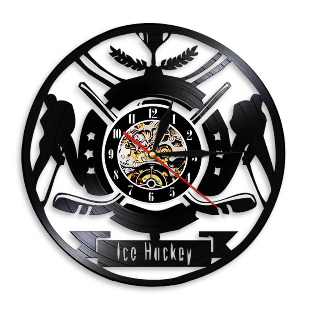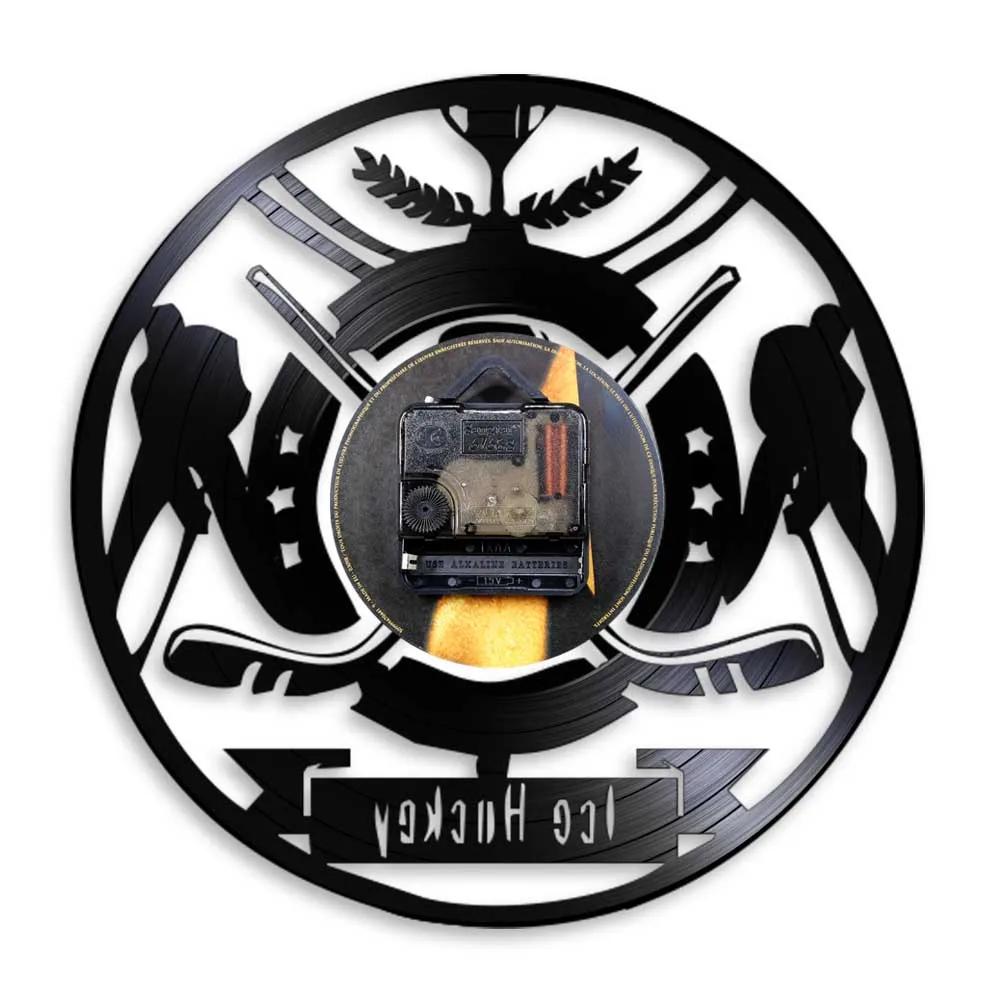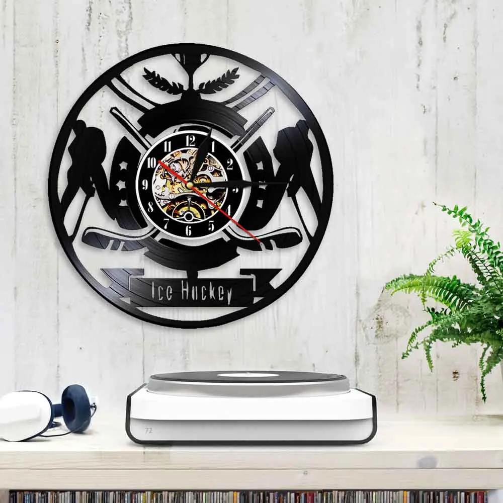 Настенные часы с виниловой пластинкой и надписью хоккеиста, с логотипом команды спортивного клуба, настенные художественные часы, современный дизайн, домашний декор