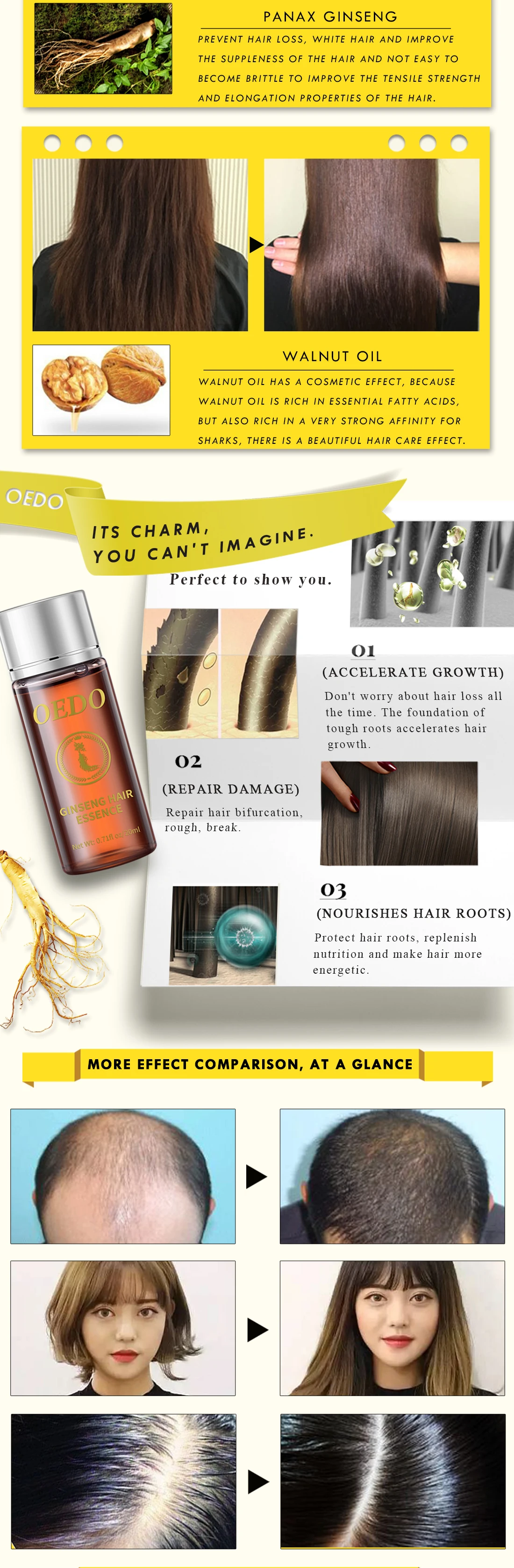 Эссенция для роста волос с женьшенем, 20 мл, жидкость для предотвращения выпадения волос, восстановления и ухода за волосами, плотные, быстрое восстановление рост волос