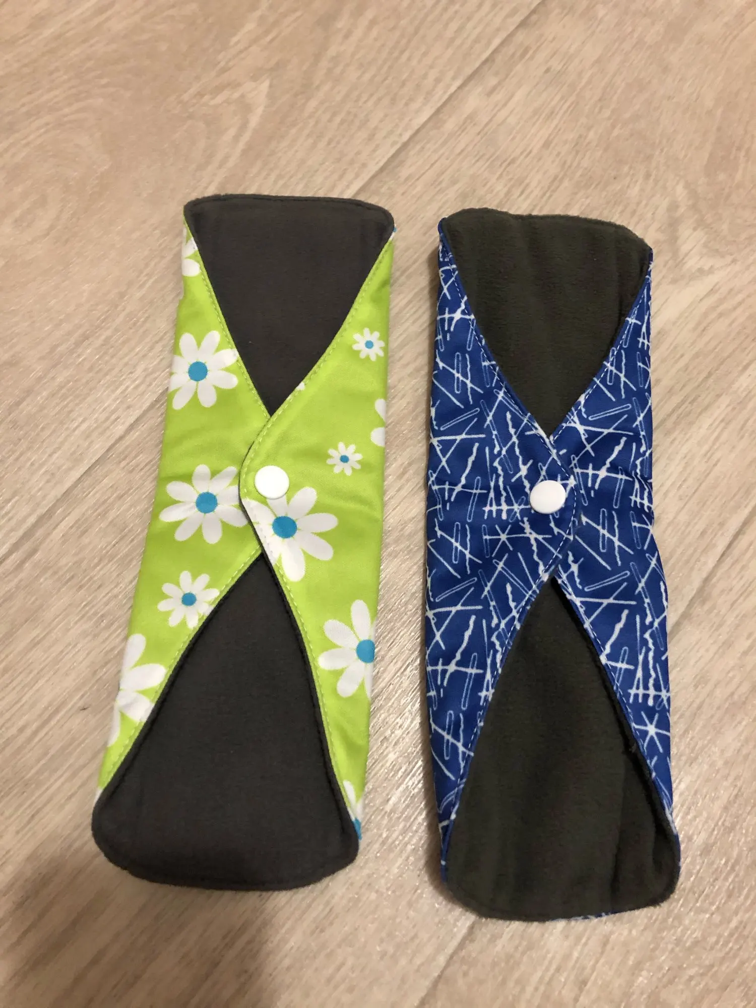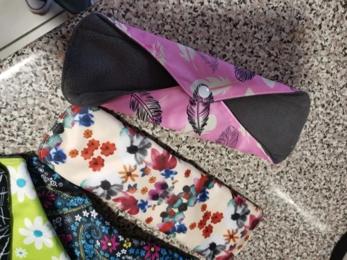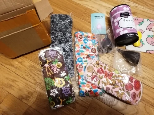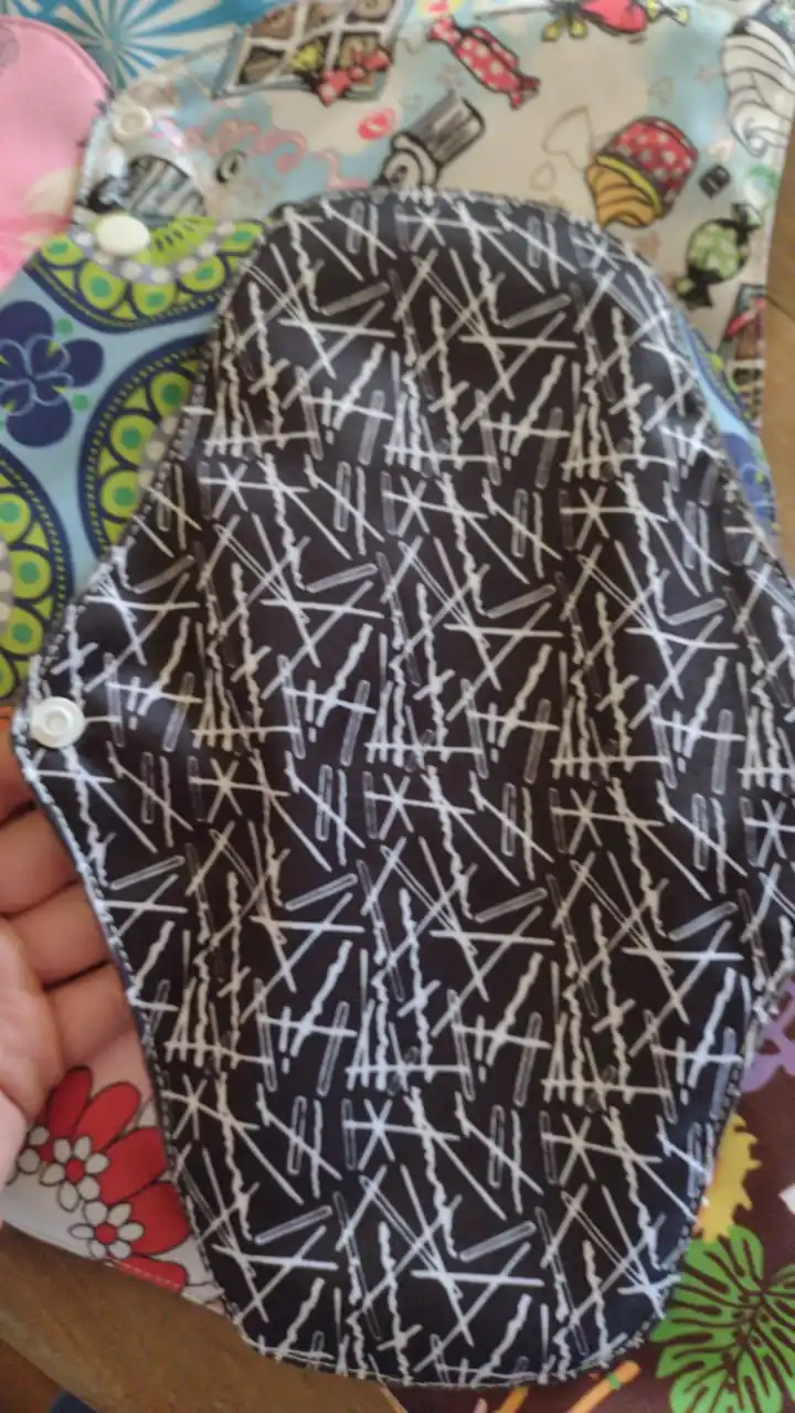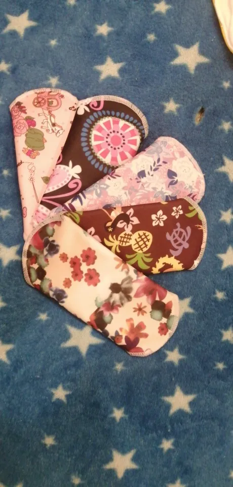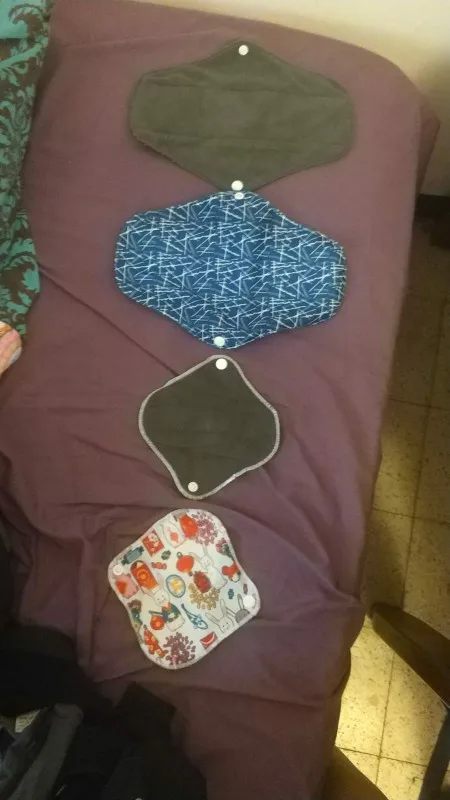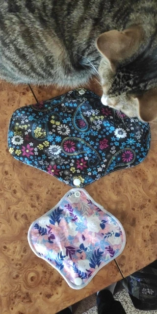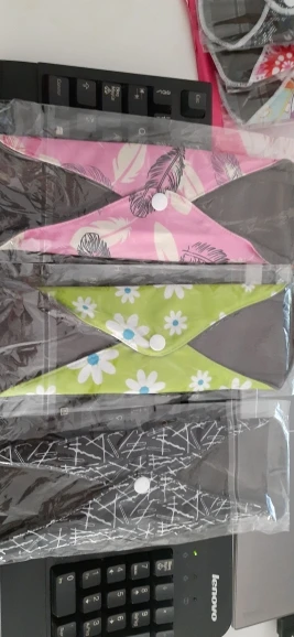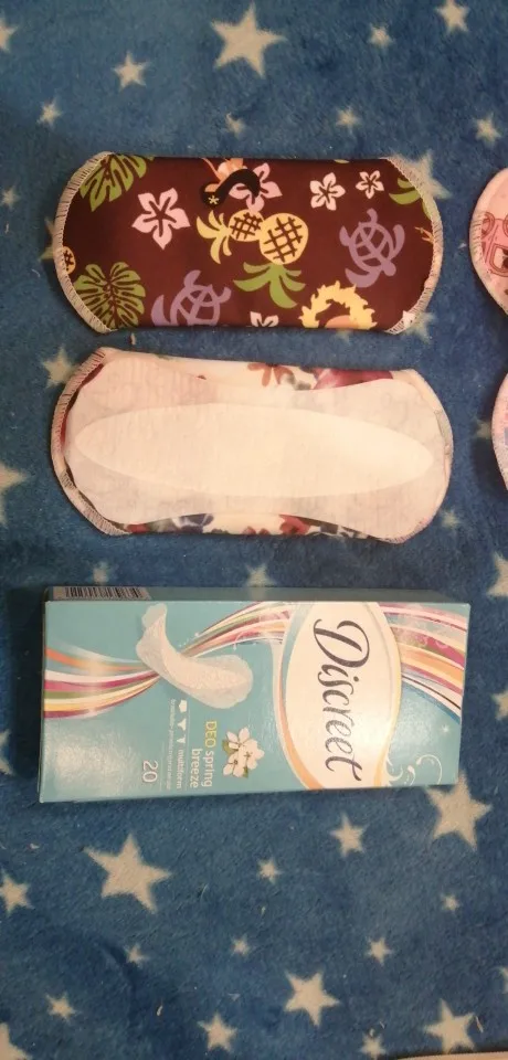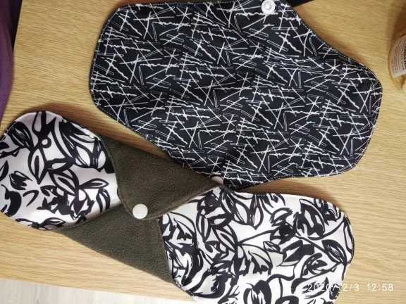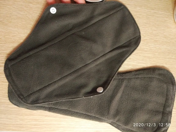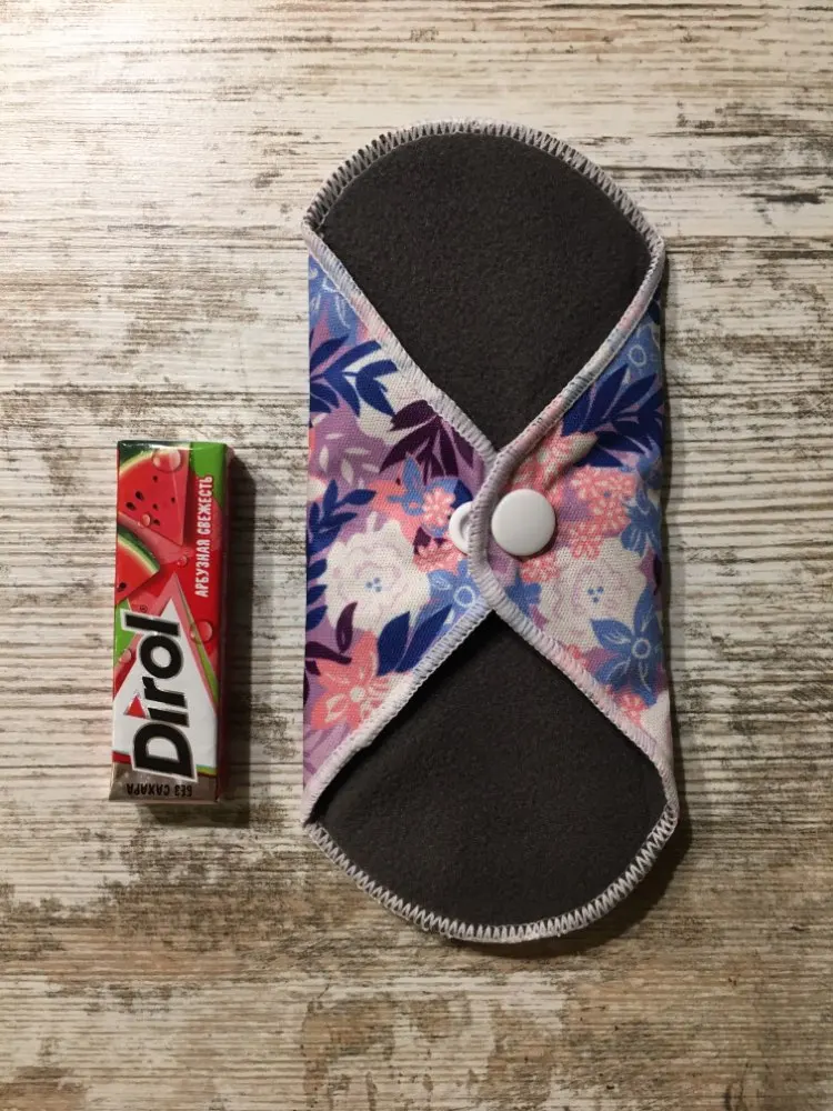 Доставка в Москву через почту за 19 дней. Покупала по одной прокладке каждого размера. Мне нравится, меня почти всё устраивает. Материал плотный, впитывает хорошо, руками простирать после использования легко. Прокладка размера M удобная, между ног ощущается, но мне это не критично. При ходьбе не ёрзает, ничего никуда не смещается. Самая большая прокладка, "ночная" L, к сожалению, во время сна неплохо так сползает под ягодицы, это минус, то есть смысла использовать для ночи её нет, хотя при ходьбе, опять же, всё ОК. Размер M ночью не сползает. После того, как дела кончились, постирала прокладки в стиралке в мешочке для белья, материал сверху чуть-чуть утрамбовался и скатался. Подозреваю, что через несколько порименений ткань начнёт слеживаться и грубеть. Но по крайней мере на полгода их должно хватить. Товар рекомендую. Наконец-то можно не париться о покупке одноразовых прокладок.