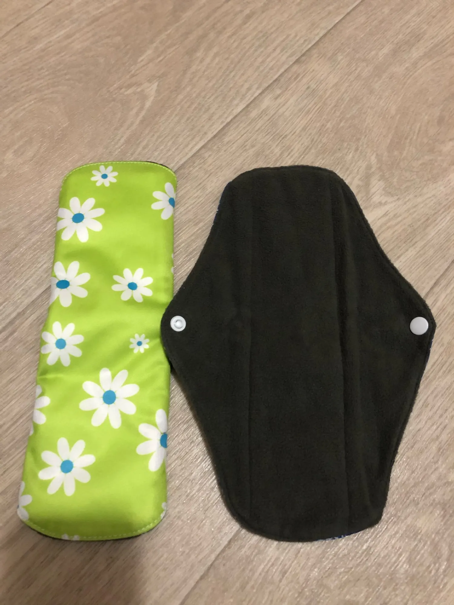 Цвета пришли сине зелёные, мои любимые. Ткань впитывающего слоя напоминает флис. Мягкая. Размер взяла М, на ночь самое то. Стирку пережили отлично. Кнопки держат прочно.