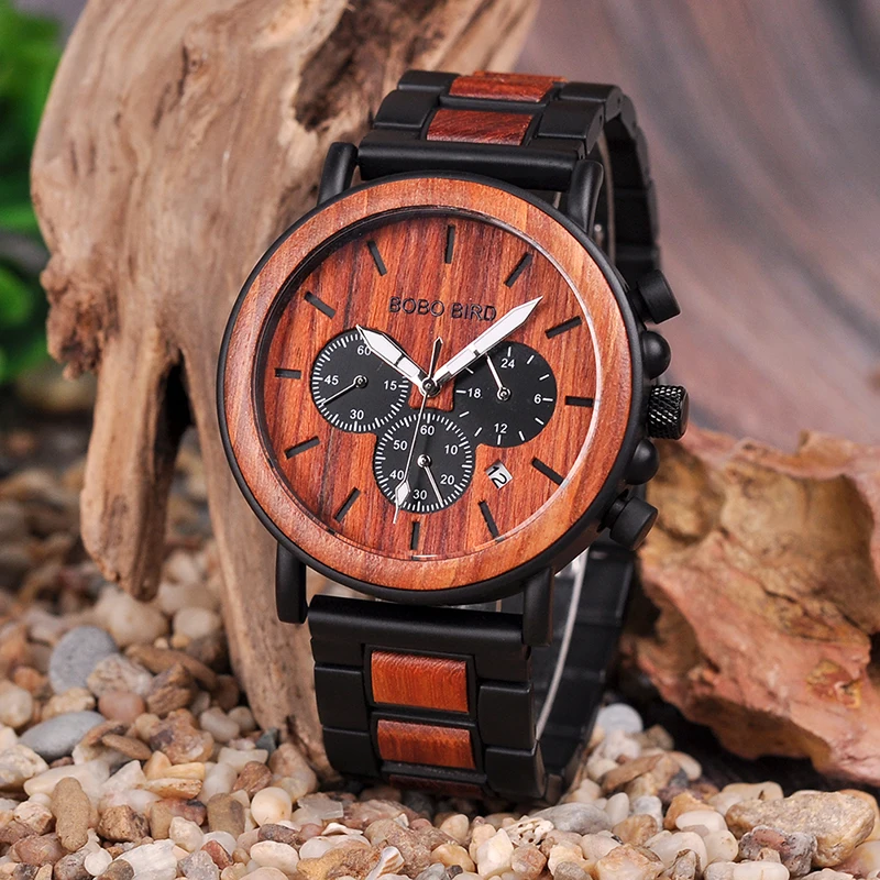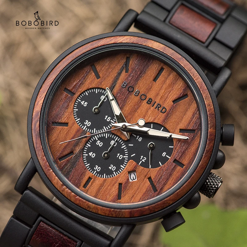 Мужские деревянные часы BOBO BIRD, роскошные стильные деревянные часы с хронографом, военные кварцевые часы в деревянной подарочной коробке, relogio masculino