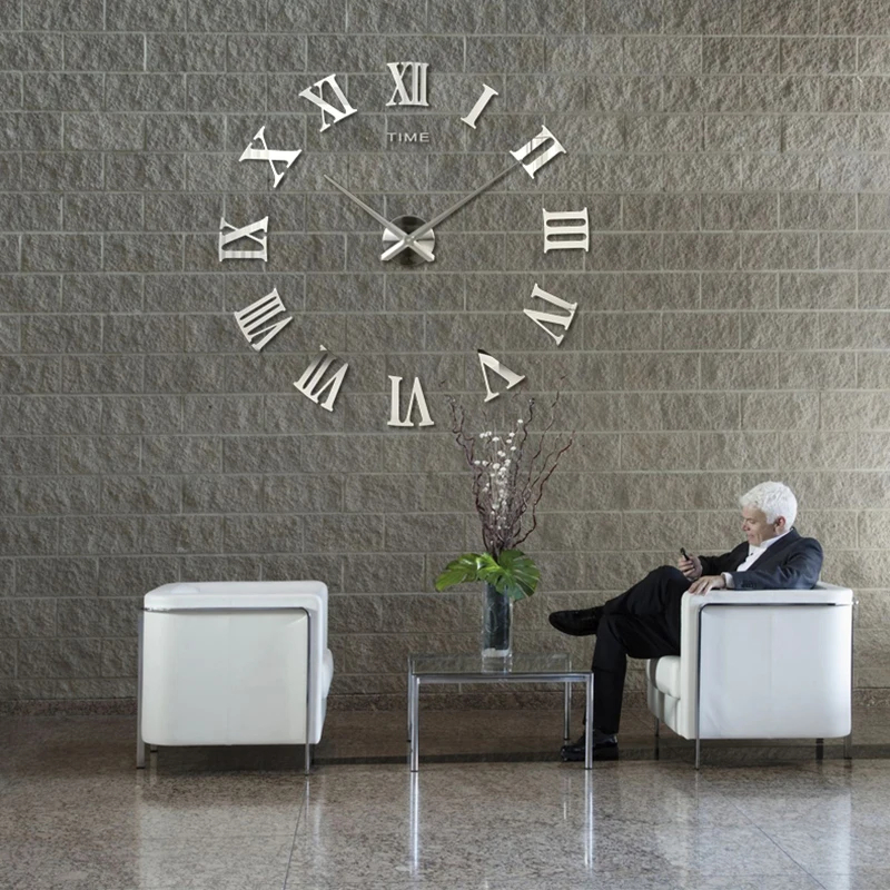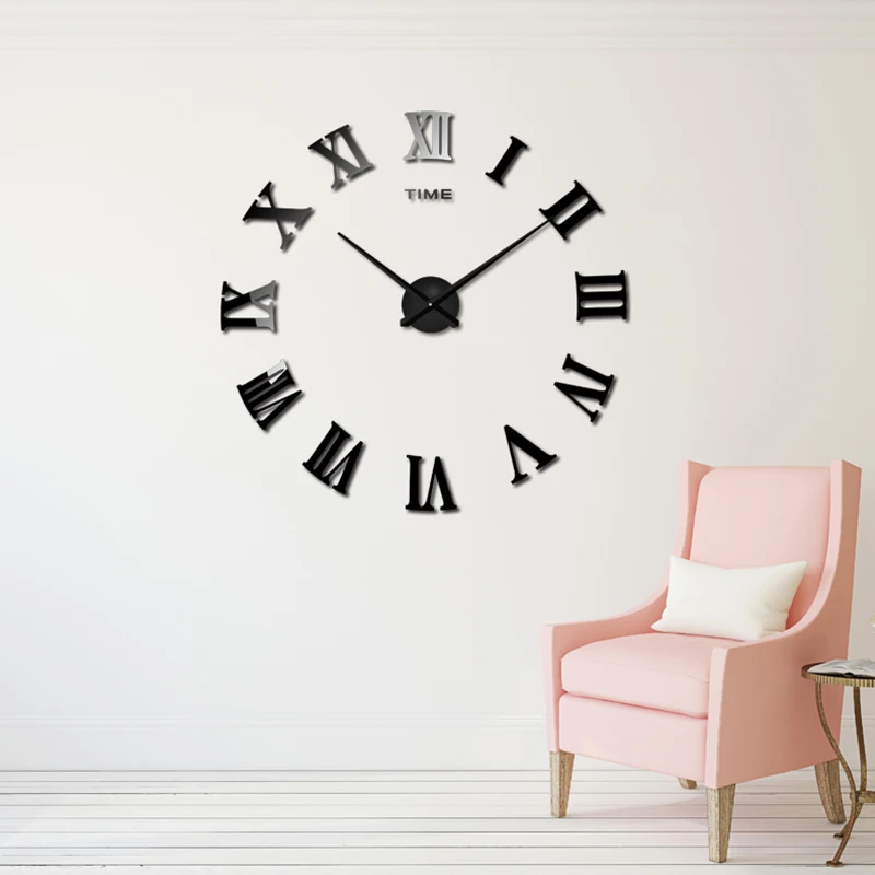 Креативные Большие размеры зеркальные акриловые настенные часы DIY классические римские настенные часы для гостиной спальни