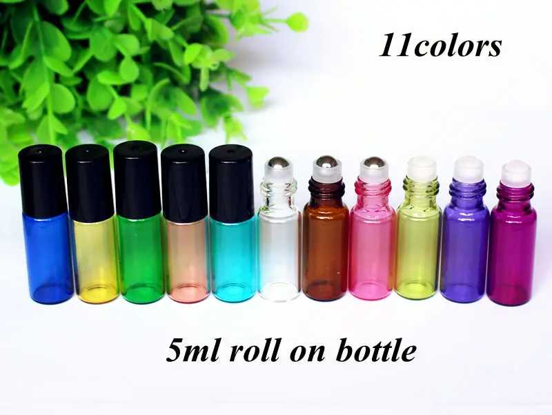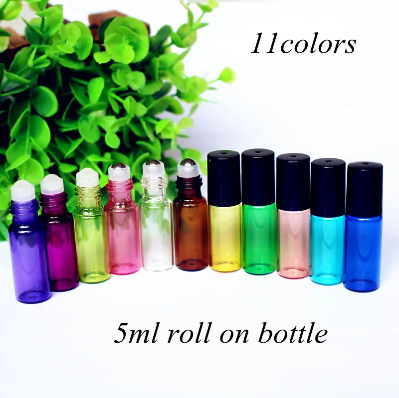 Стеклянный флакон для духов, 5шт.упак.5 мл, янтарные духи, многоразовый флакон для духов со стекляннымметаллическим шариком, флаконы для эфирных масел
