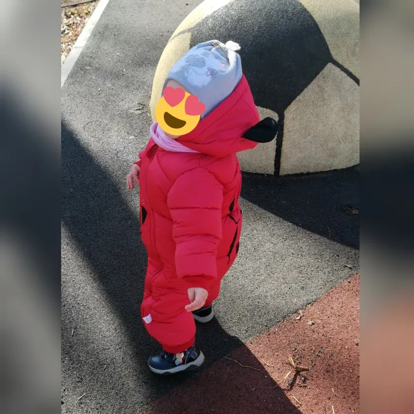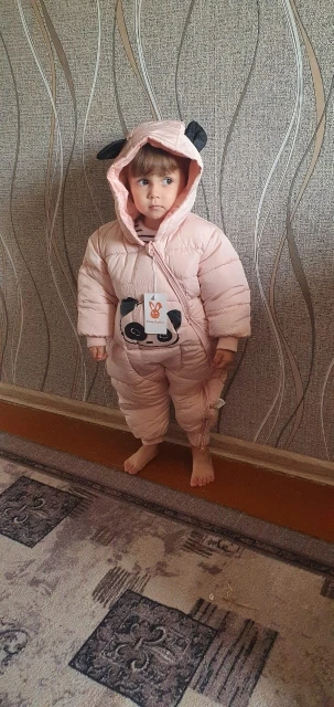 Отличный комбинезон, строчки ровные, все хорошо прошито, запахов посторонних нет. Брала с запасом, нам годик, наш рост 77 см, мы крупненькие, комбез почти в пору, думаю, на сезон только хватит. Не тонкий, но и на холодную зиму не подойдёт, на позднюю осень и раннюю весну самое то. Единственное, капюшон широковат.