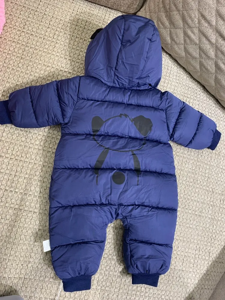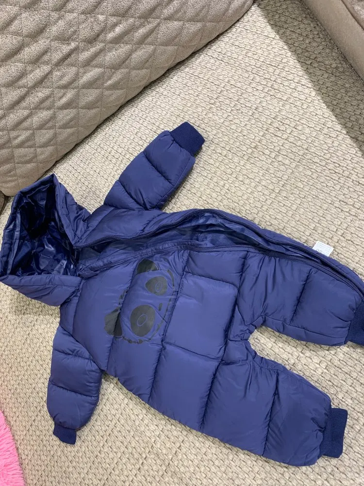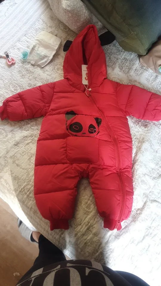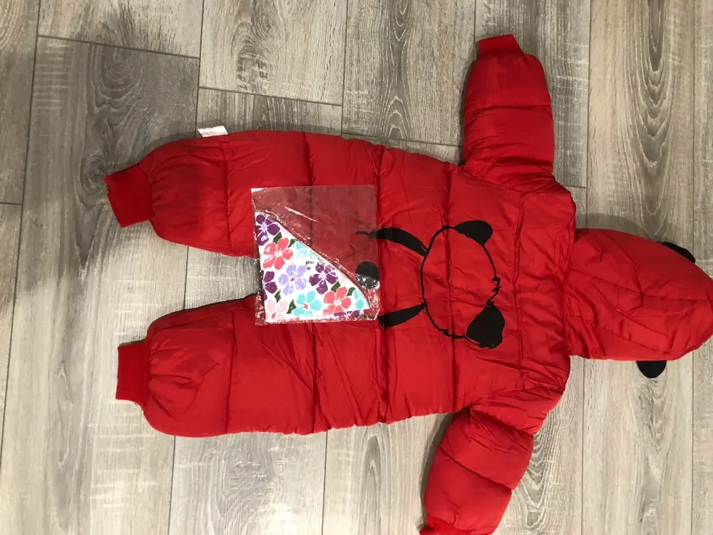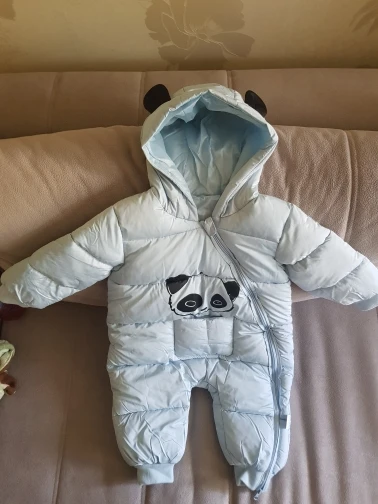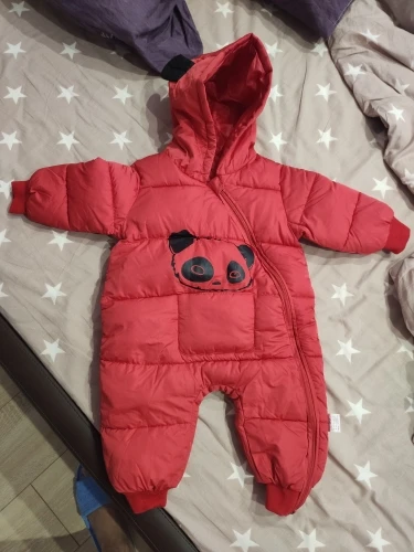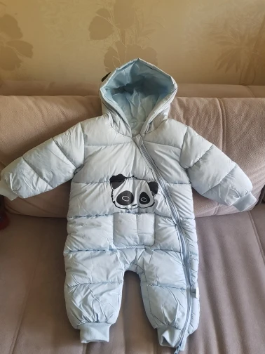 Комбинезон хорошего качества, нитки не торчат, единственное широкий очень, капюшон большой и жаль что горло не закрывается. Мы ростом 60 см нам 3 месяца заказала 12м на зиму с запасом, так как зимой через 2-3 мес будет уже как раз (с учётом поносить до весны) товар пришёл быстро за 2 недели