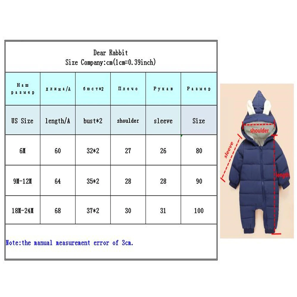 Комбинезон соответствует описанию. На ребёнка ростом 79-80 брала размер 24м (100 на бирке). Размер подошёл как раз, но, думаю, на следующий сезон будет маловат. Достаточно объёмный. Не на зиму, если только начало зимы, или холодную осень. Доставка очень долгая. В Беларусь (Минск) пришёл 2 месяца.
