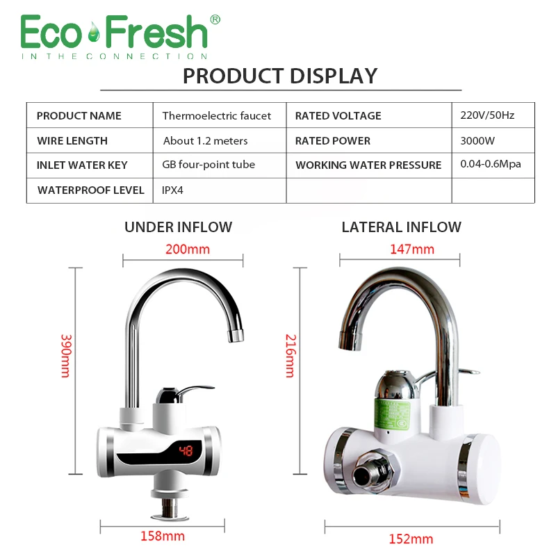 Электрический смеситель Ecofresh, Мгновенный водонагреватель, смеситель для холодного нагрева, безрезервуарный Мгновенный водонагреватель