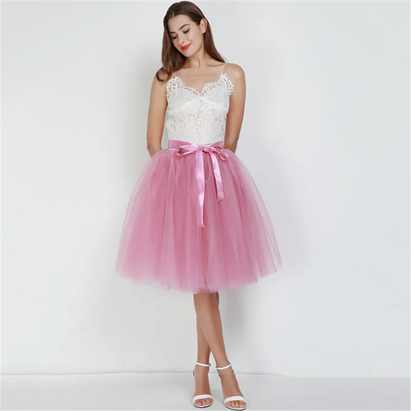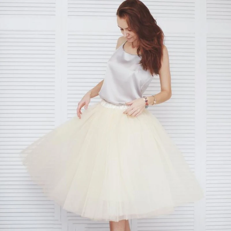 Юбка-пачка женская, 7 слоев, 65 см, из тюля, с высокой талией, эластичная, складчатая
