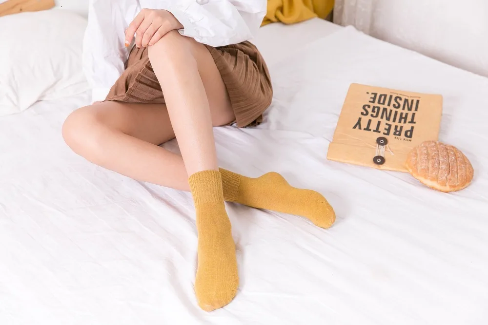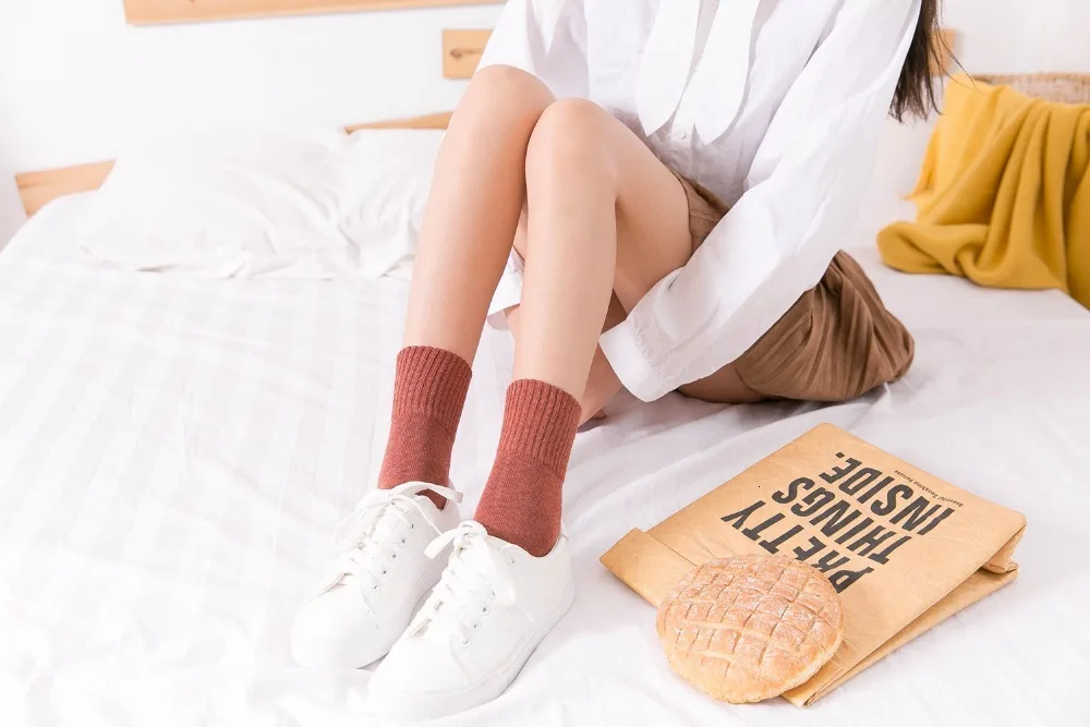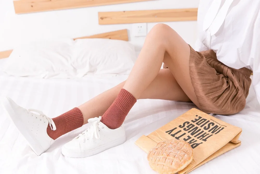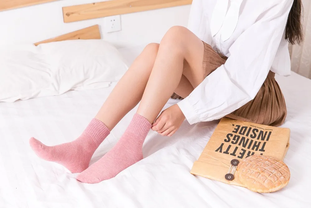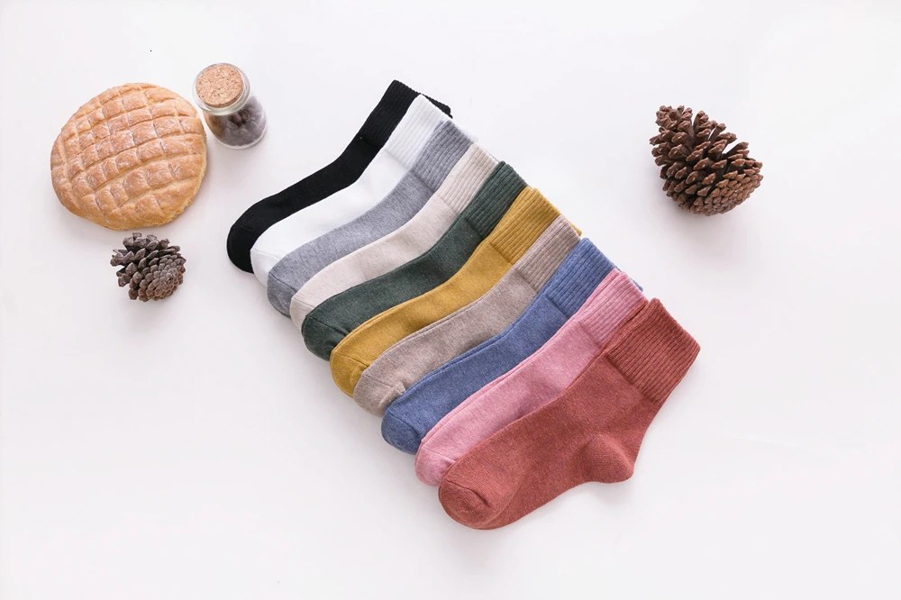 Носки CHAOZHU Женские однотонные из 100% хлопка, высококачественные базовые мягкие в рубчик, на осень-зиму