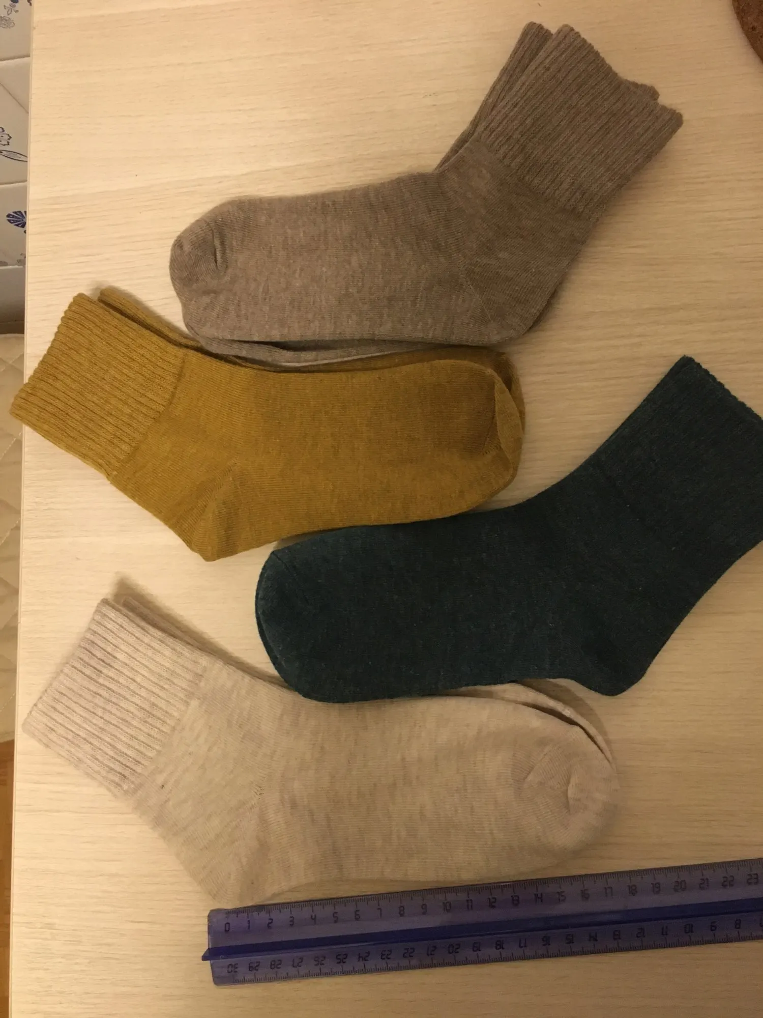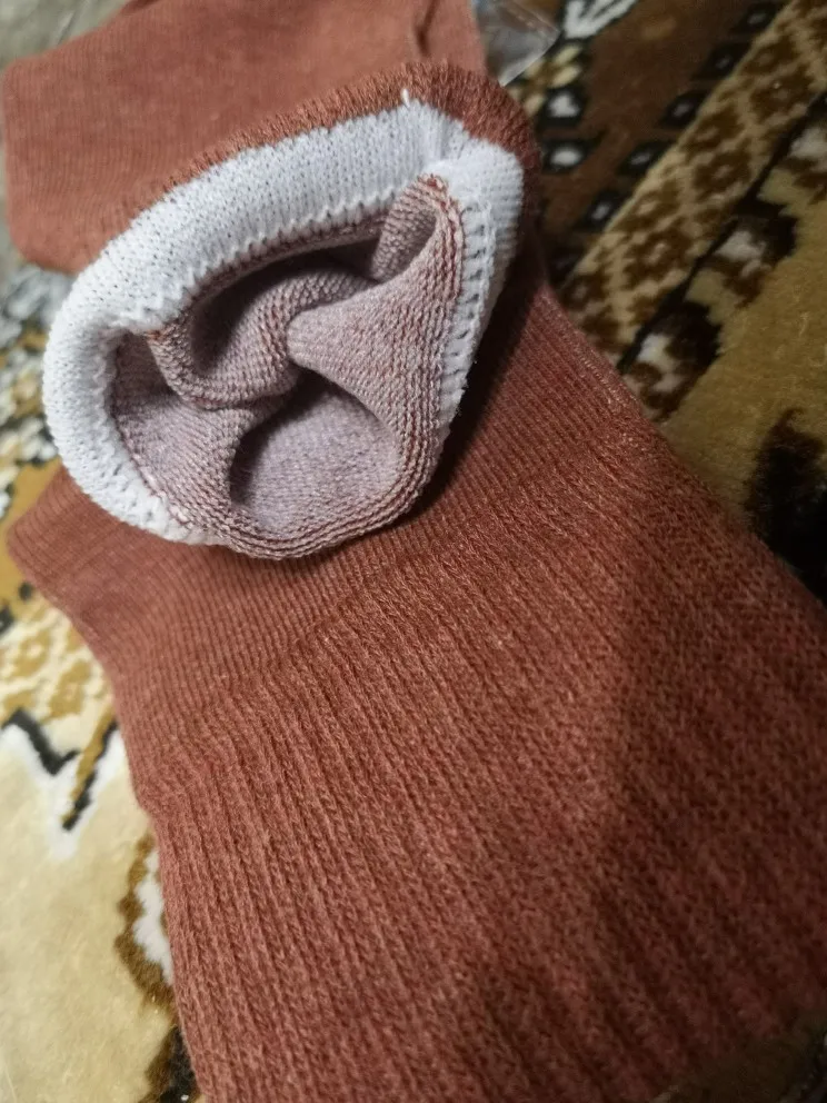 Очень-очень хорошие носочки. Тепленькие. Осенне-зимний вариант, летом и весной наверное будет жарко, хотя кому как... За счёт плотной широкой резинки отлично держатся и не сползают, классно выглядывают из ботинок на шнуровке - и не низкие и не супер-высокие - очень стильно выглядит, заказала себе уже в других цветах. Доставка была не очень долгой в Минск, в пределах разумного для али. Спасибо продавцу!