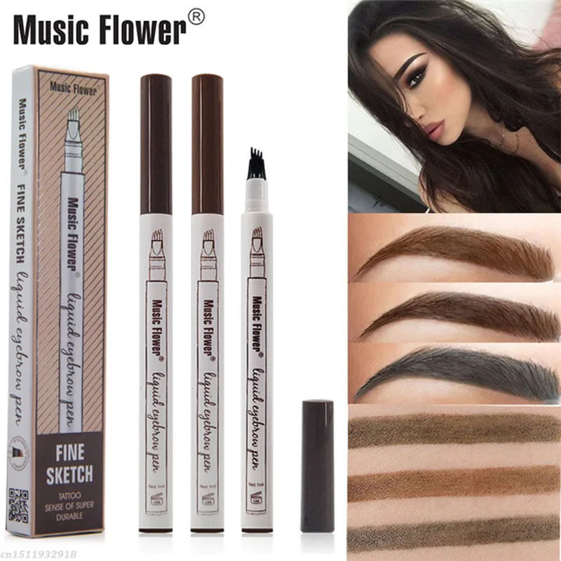 Бренд Music Flower, макияж, 4 цвета, тонкий эскиз, жидкий карандаш для бровей, водостойкая тату, супер прочная ручка для бровей, защита от пятен