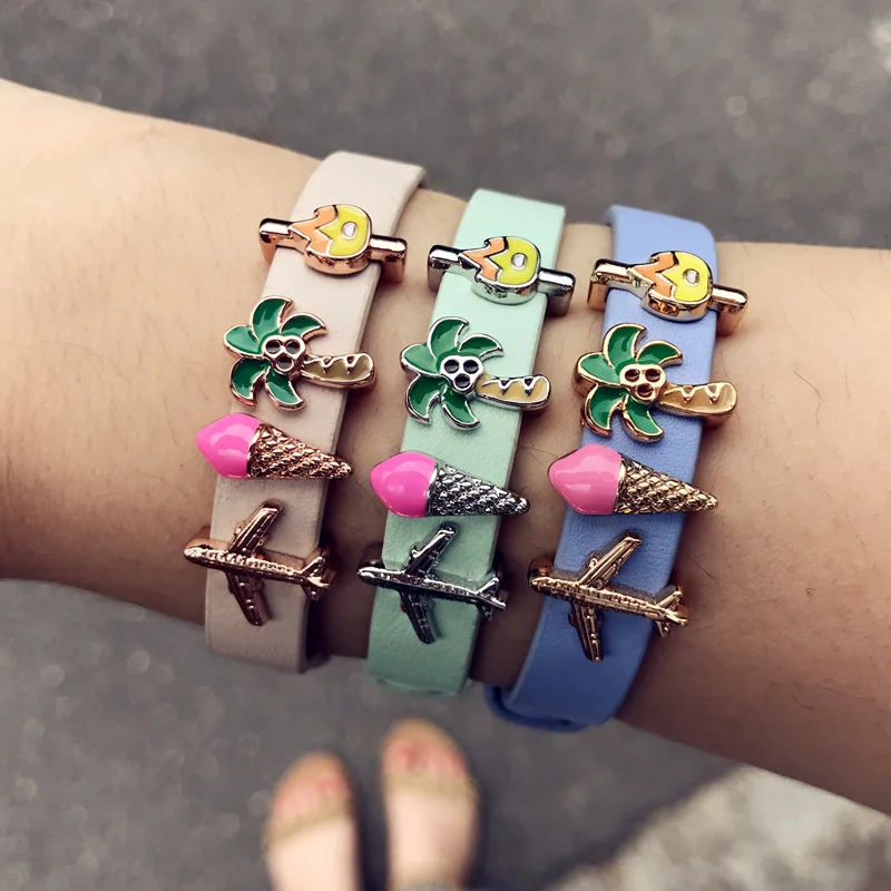 SANSHOOR Новая Коллекция Украшений Подвески для Путешествия Самолет Мороженое Пальма и Огонь для Горячих девушки Для женщин подходит на Кожанный Сеточный Браслет