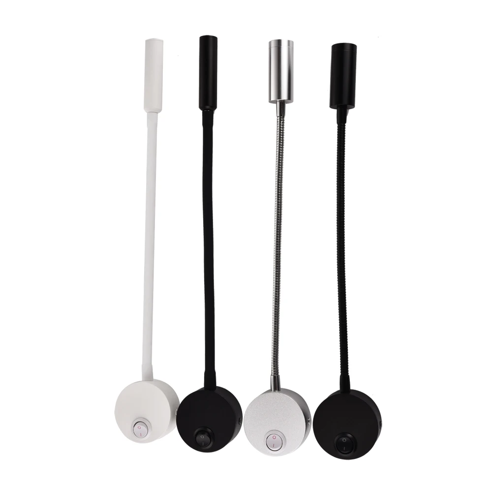 Современная настенная лампа белого, серебристого и черного цвета, светильник для чтения для спальни, настенная лампа с гибкой шеей на 360 градусов для коридора, бра с европейской вилкой 3 Вт