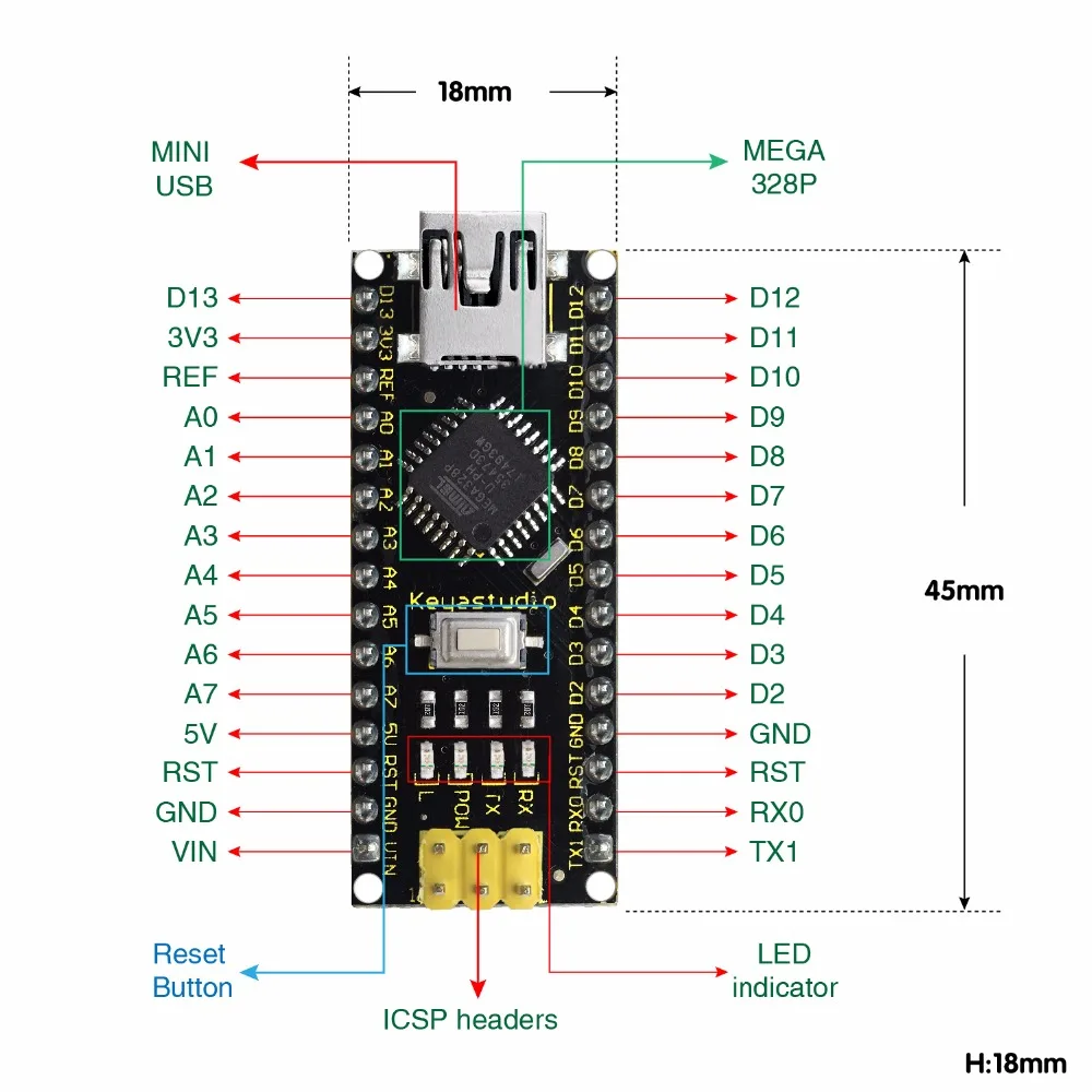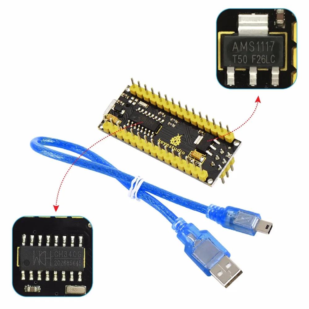 Бесплатная доставка, 1 шт., плата нано-контроллера Keyestudio 5 в CH340 + USB-кабель для программирования Arduino