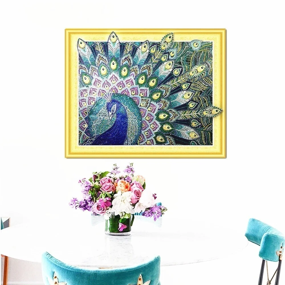 HUACAN специальная форма алмазная Картина Павлин круглая дрель Diy Бриллиантовая мозаичная фигурка животного Алмазная вышивка набор рукоделие 40х50см