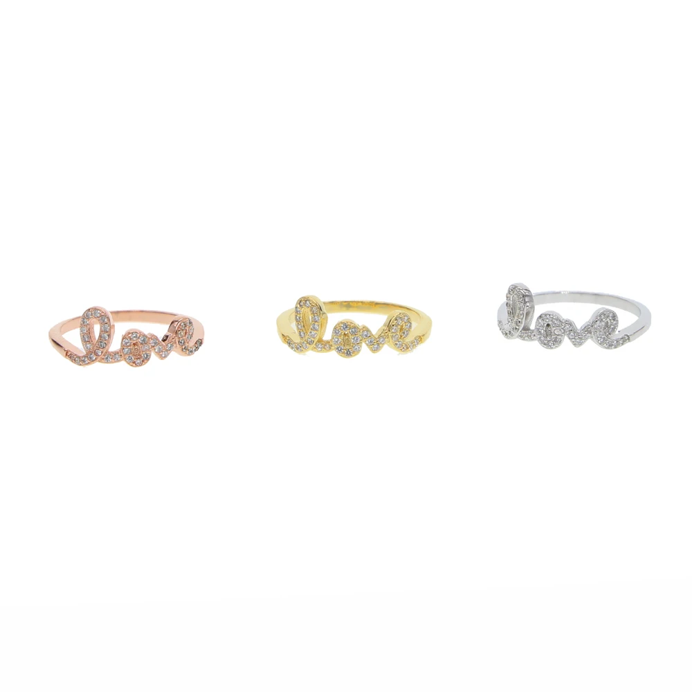 100% 925 пробы серебро Классический минимальный дизайн любовная буква выложенная cz Любовь Золотая икра Золото Серебро 3 цвета любовный подарок обещание кольцо