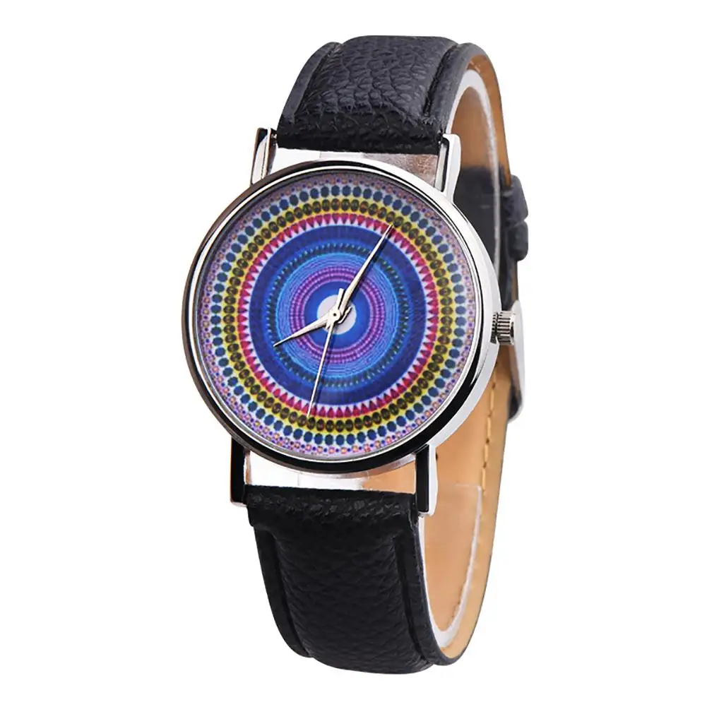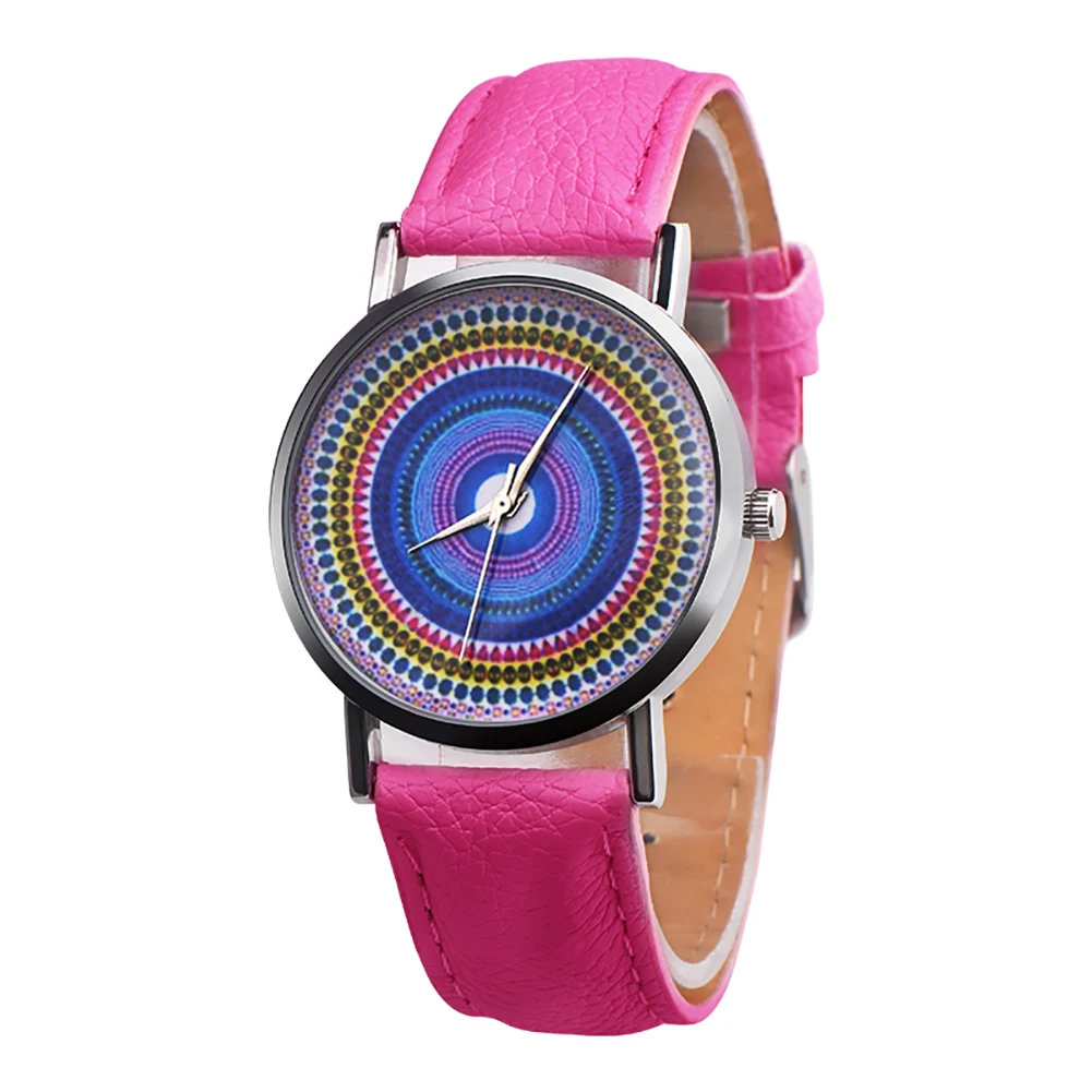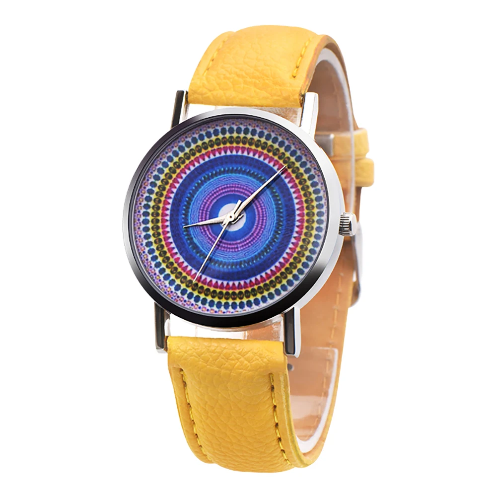 Женские круглые кварцевые наручные часы с ремешком из искусственной кожи