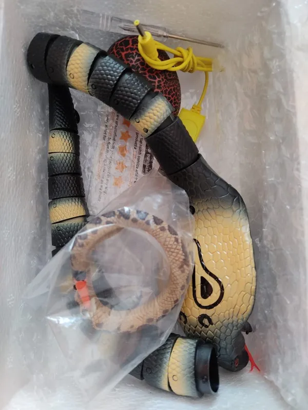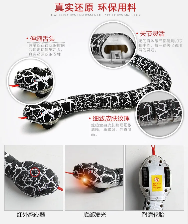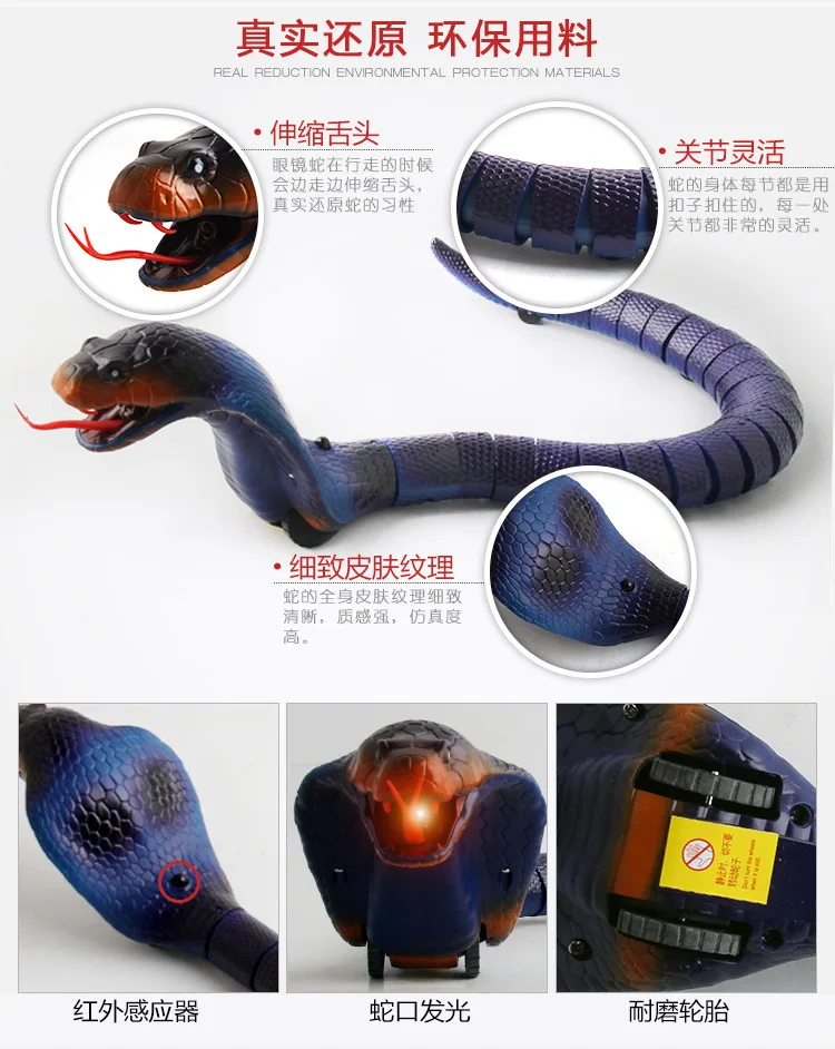 [Змея с дистанционным управлением] характеристики:Дистанционное управление ходьбой, имитация перистальтики.Это новый тип разбивающей игрушки, которая удивляет друзей и семью и делает вечерние полной радости.Подходящий возраст: 14 лет и старшеРасстояние дистанционного управления: 5 мБатарейка пульта дистанционного управления: батарейка кнопочная 3 * RL44 (входит в комплект)Меры предосторожности:1. В стационарном положении, пожалуйста, не Поворачивайте колесо вручную.2, батарейки дистанционного управления для кнопочной батареи, Отвинтите винт, чтобы установить батарею.3. Зарядное устройство рядом с выключателем.Комплектация:1 * игрушечная змея1 * пульт дистанционного управления1 * USB-кабель для зарядки3 * Кнопочный аккумуляторУпаковка из пенопластаПроверьте других змей[Совет] жук на пульте управления, таракан, гусеница, сороконожка, случайный цвет. Чтобы сэкономить вам деньги, нет оригинальной упаковки.