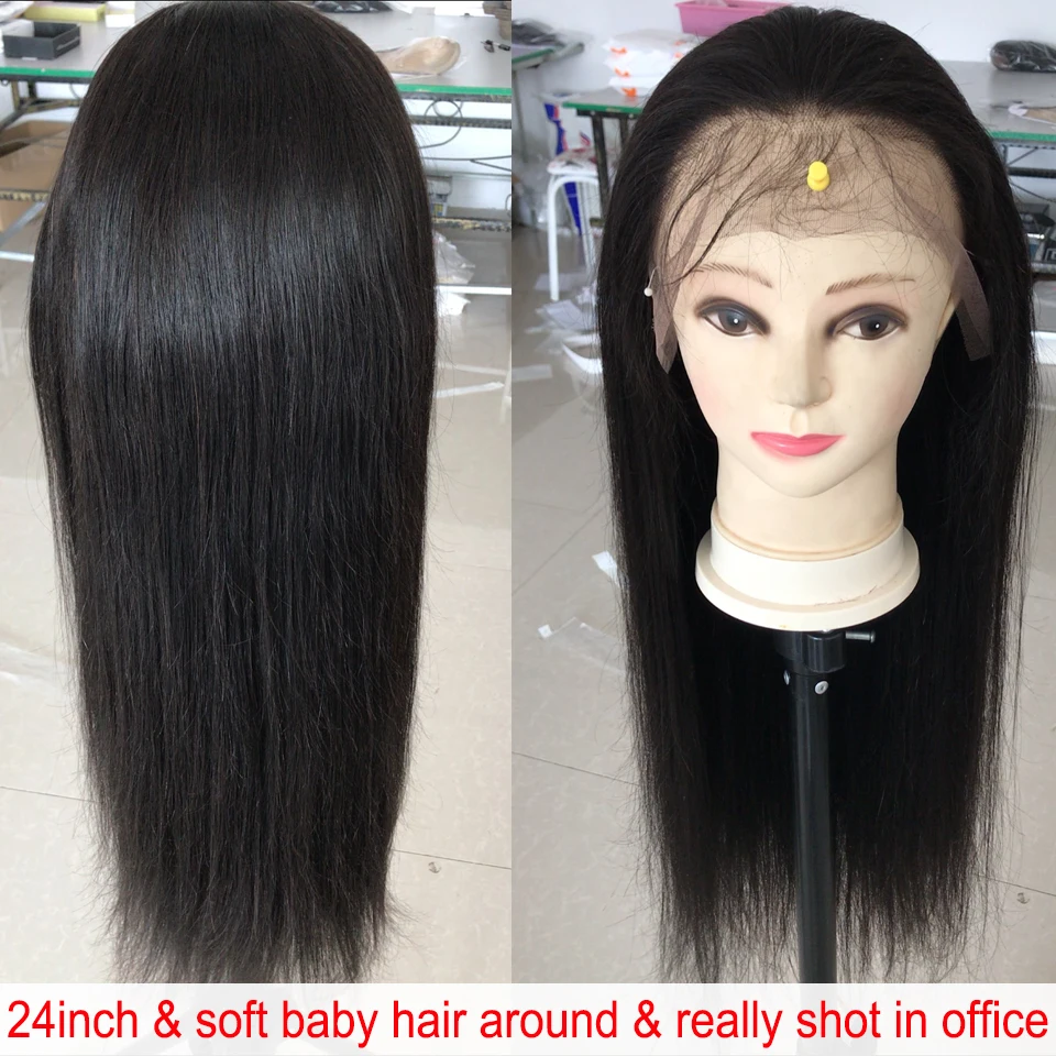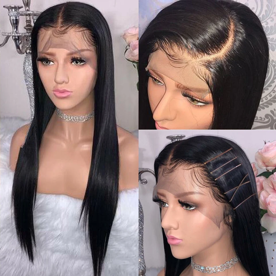 Парик из натуральных черных бразильских волос, 13X4, парики с детскими волосами, 130%