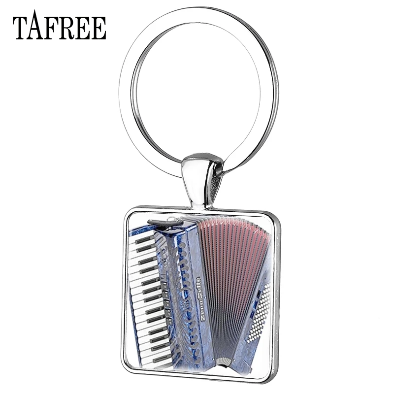 TAFREE винтажный мультяшный музыкальный инструмент для девочек квадратный брелок стеклянный купол аккордеон кольцо для ключей танцор ювелирный держатель ключей AC01Фотографии товара: