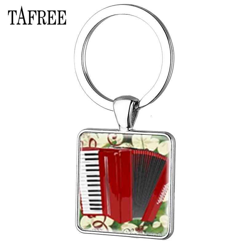 TAFREE Love Music Love Accordion Art Picture квадратный брелок стеклянный музыкальный инструмент фотография, ключ, кольцо, ювелирный держатель для ключей AC39Фотографии товара: