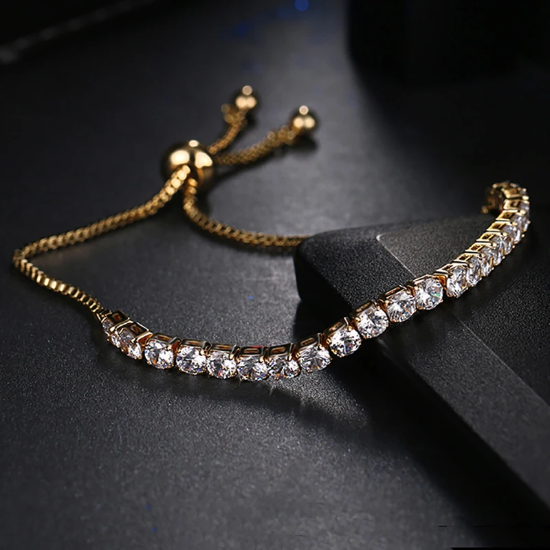 Женский Регулируемый браслет с круглыми Фианитами, теннисные браслеты белого и золотого цвета с кристаллами, свадебная бижутерия, Подарочная бижутерия