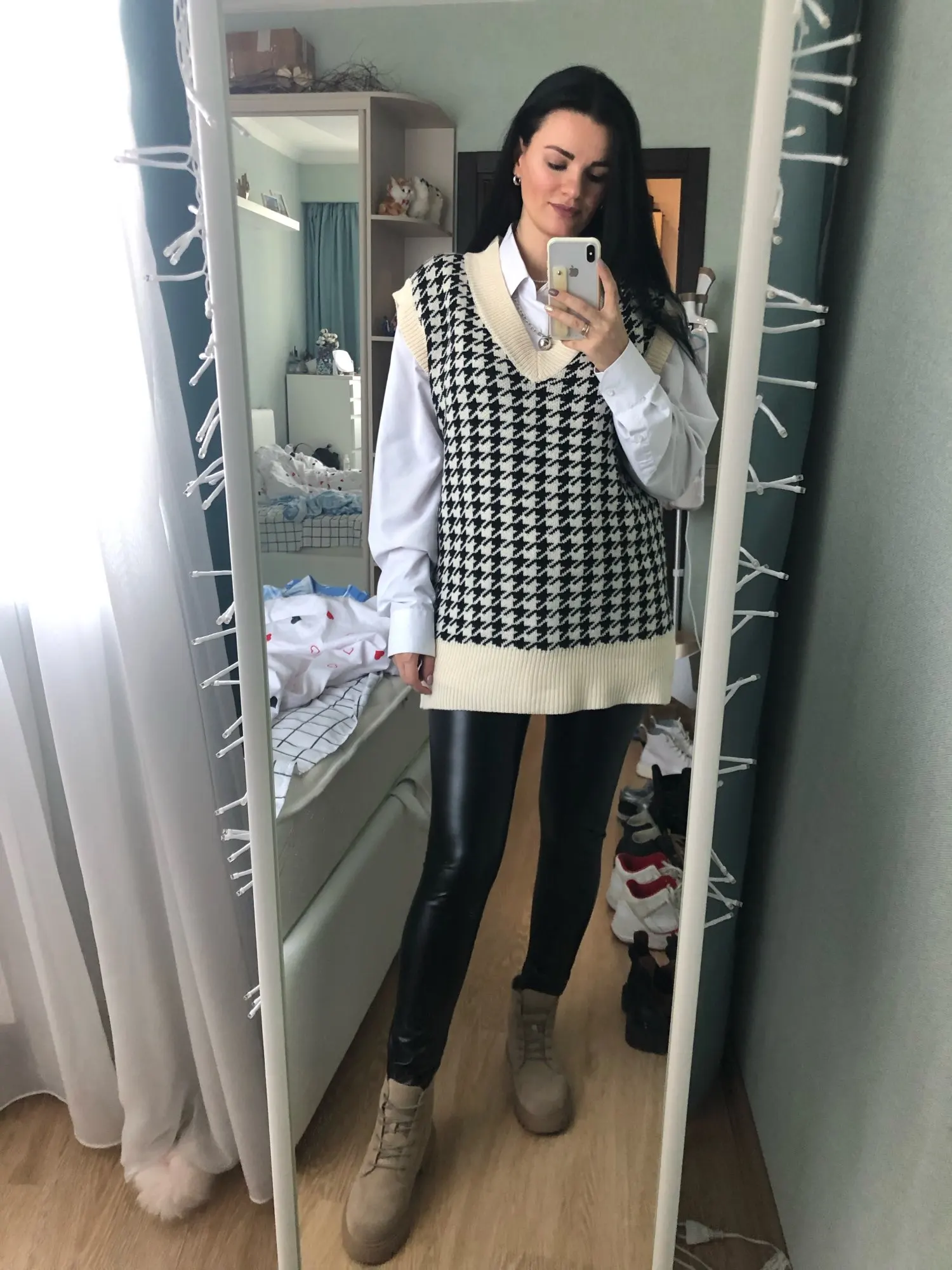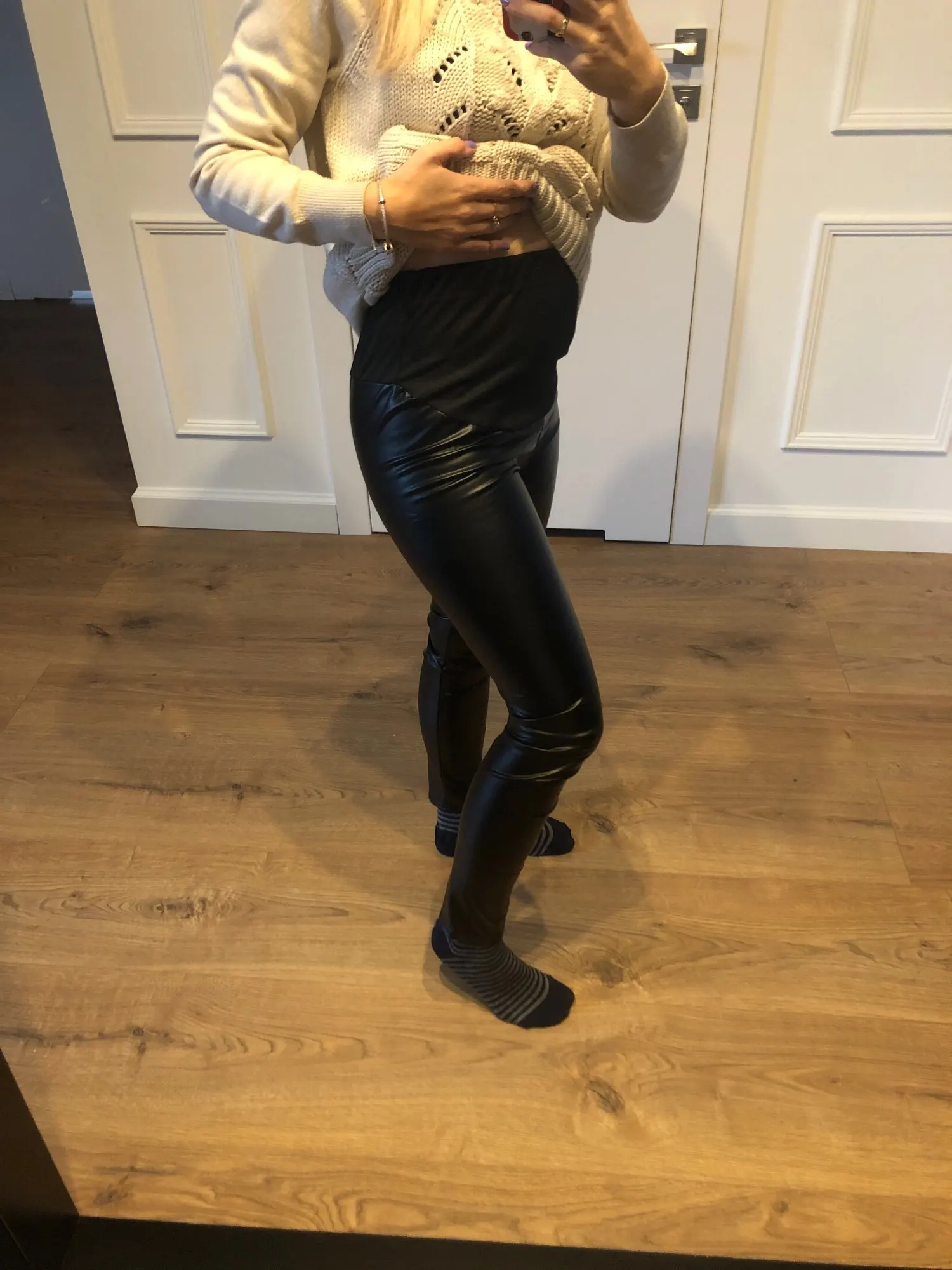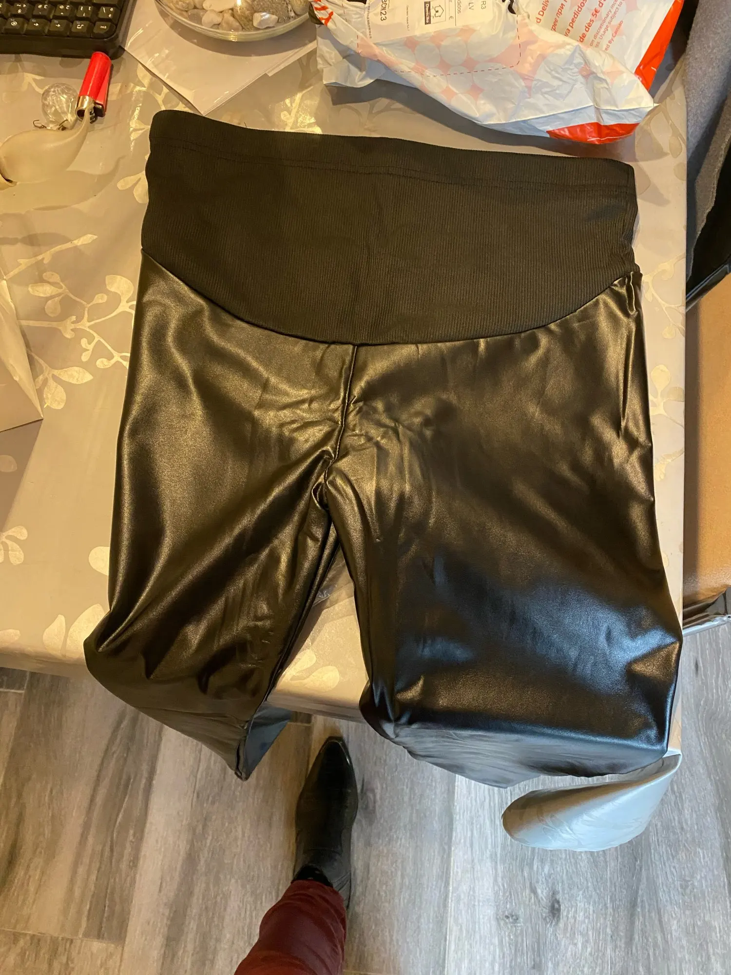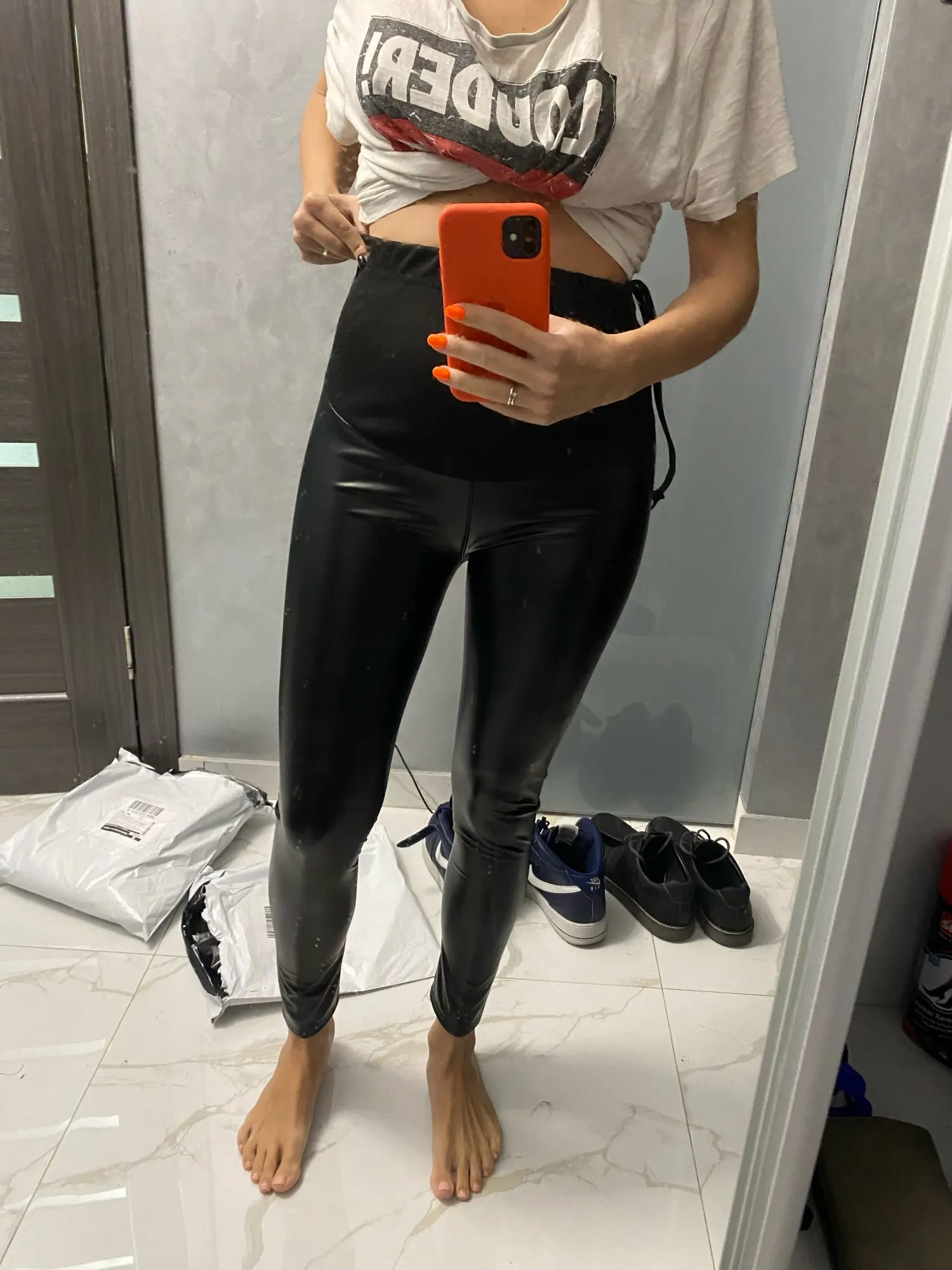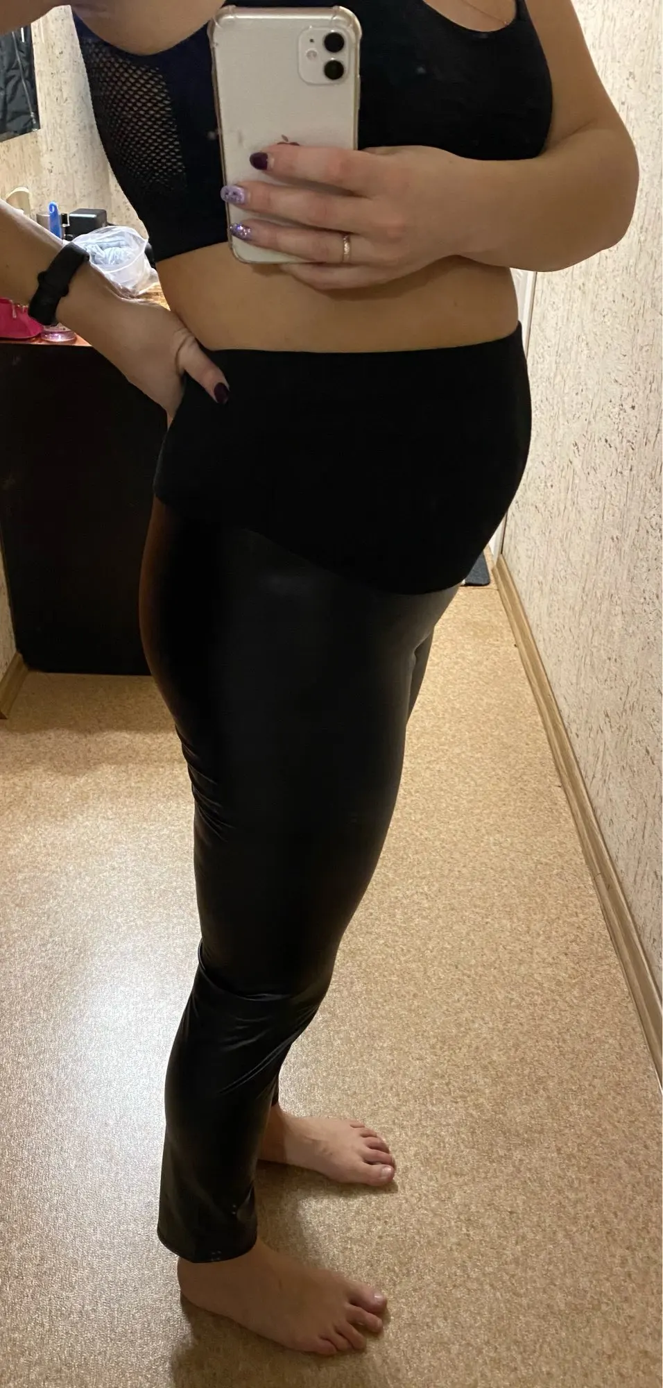 Леггинсы YWHUANSEN из искусственной кожи для беременных осенне-зимние теплые штаны для женщин Enceint Plus тонкие бархатные с регулируемой высокой талией-Материал: из искусственной кожи, полиэстер-