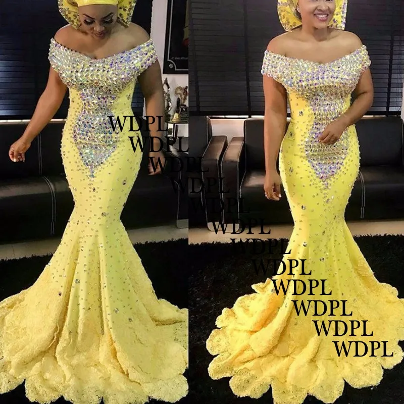 Нигерийские наряды для конкурса желтое платье для торжества женское платье с кристаллами вечернее платье с бисером Великолепное вечернее платье