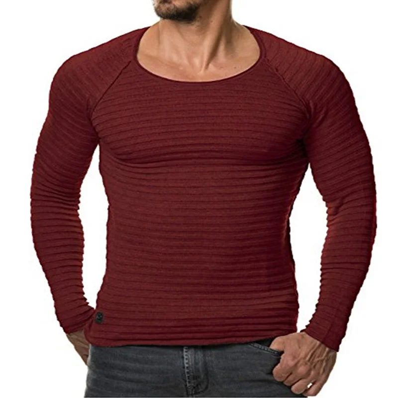 Осень 2021, мужской вязаный свитер, пуловер, мужские повседневные облегающие свитера с круглым вырезом и длинным рукавом, черный, красный пуловер, женский