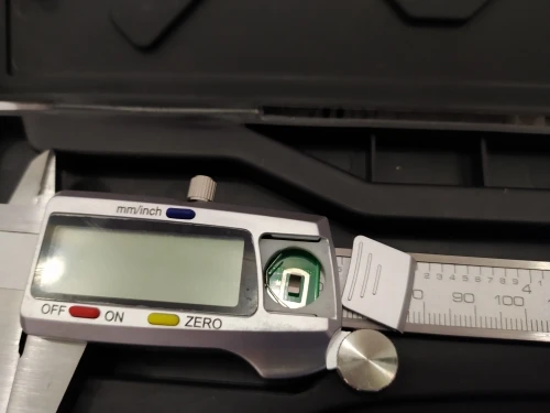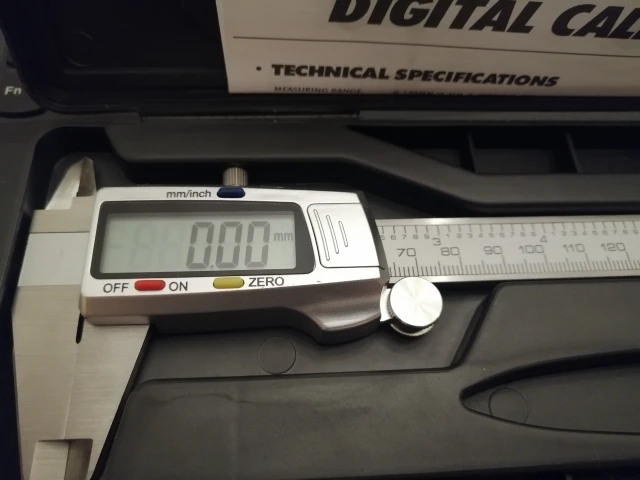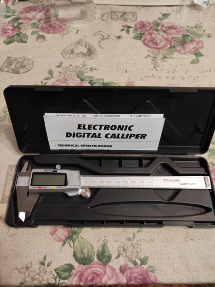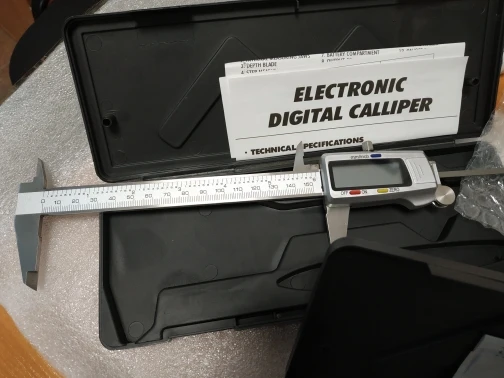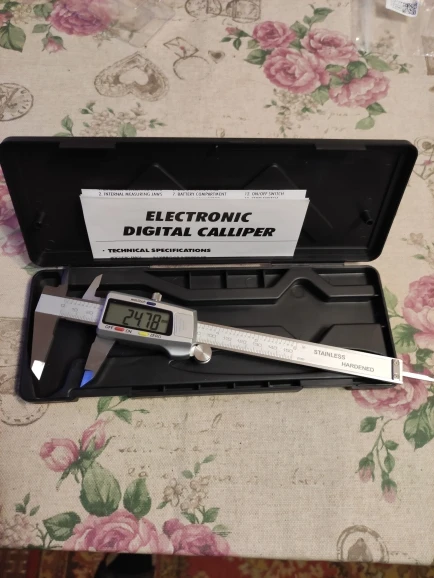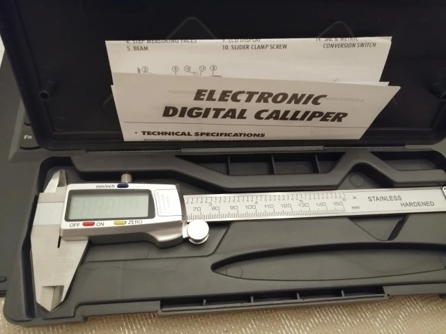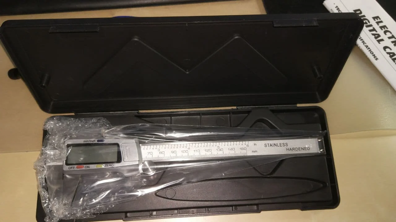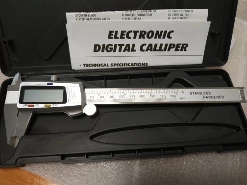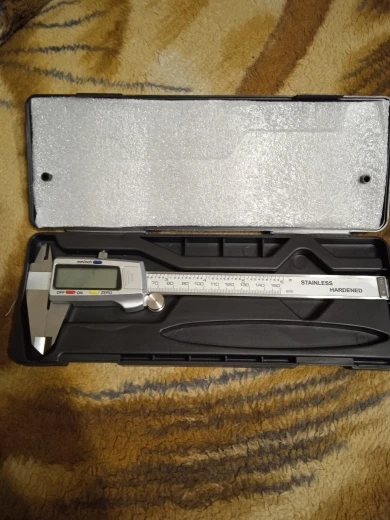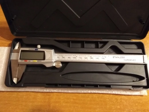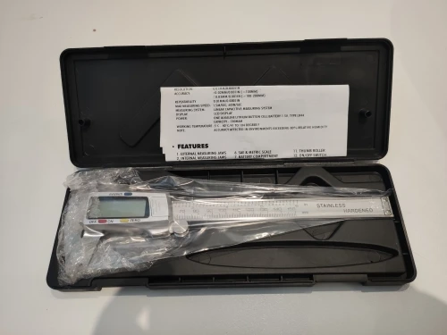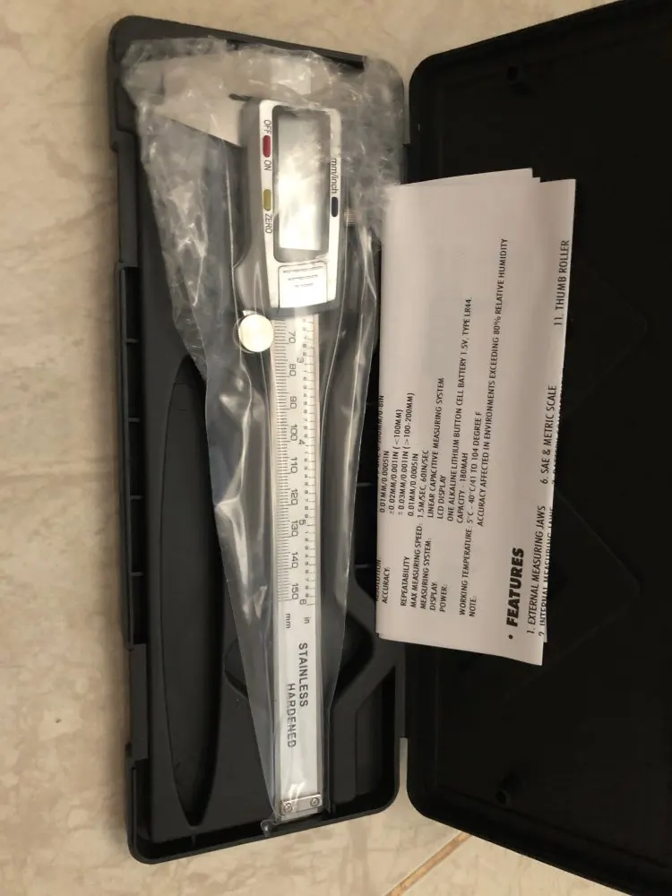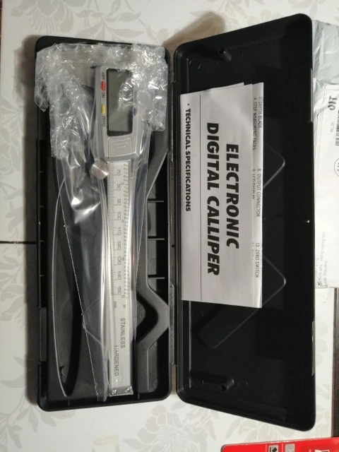 До СПб посылка дошла за 10 дней до постамата в Пятёрочке, очень удобно. Батарейки в комплекте нет. Брал в футляре. Штангенциркуль имеет большой экран, цифры хорошо читаются. на корпусе три кнопки: включение/выключение, обнуление показаний, переключение мм в дюймы.