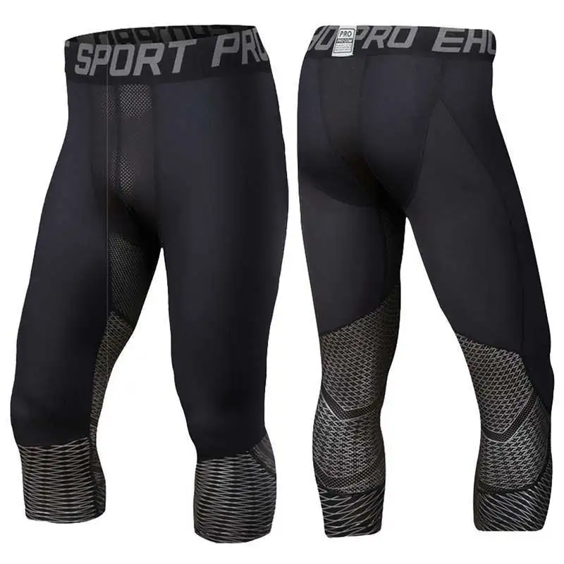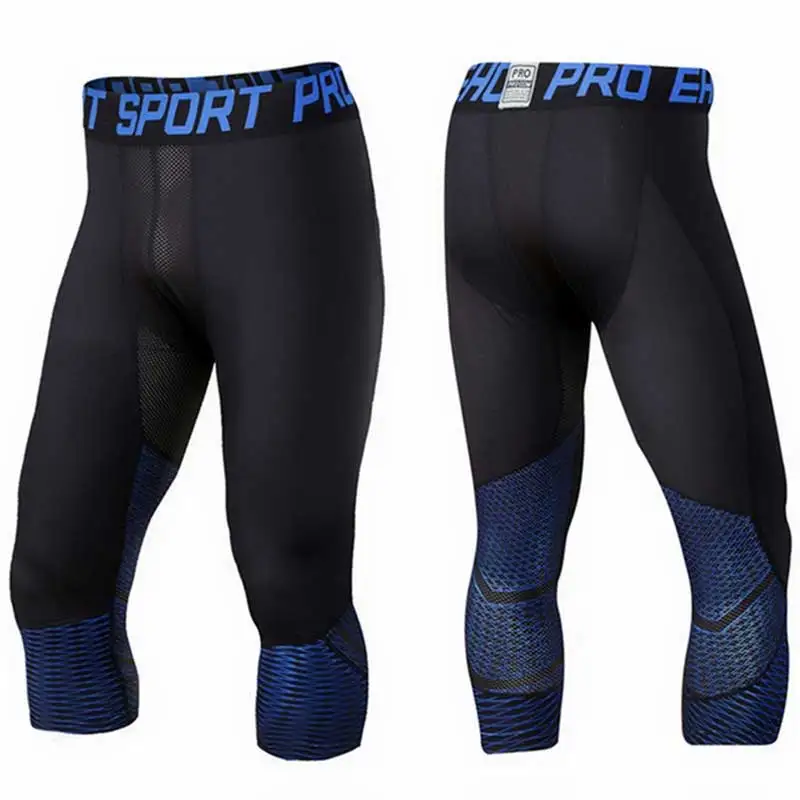 Для мужчин Pro сжатия быстросохнущая укороченные колготки капри штаны поезд для йоги тренажерного зала фитнес, тренировки, Спорт Леггинсы UX37