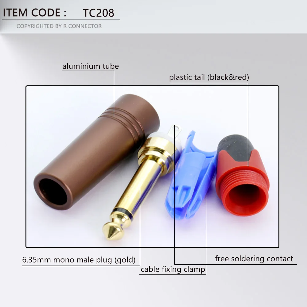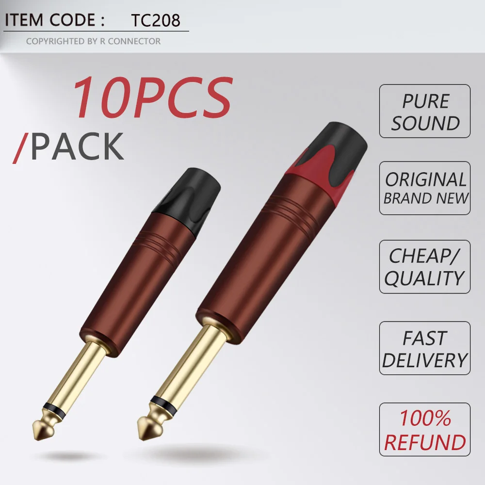 10 шт. моно разъем 6,35 мм для усилителя микрофона, латунный Позолоченный разъем 6,3 мм, штекер 14
