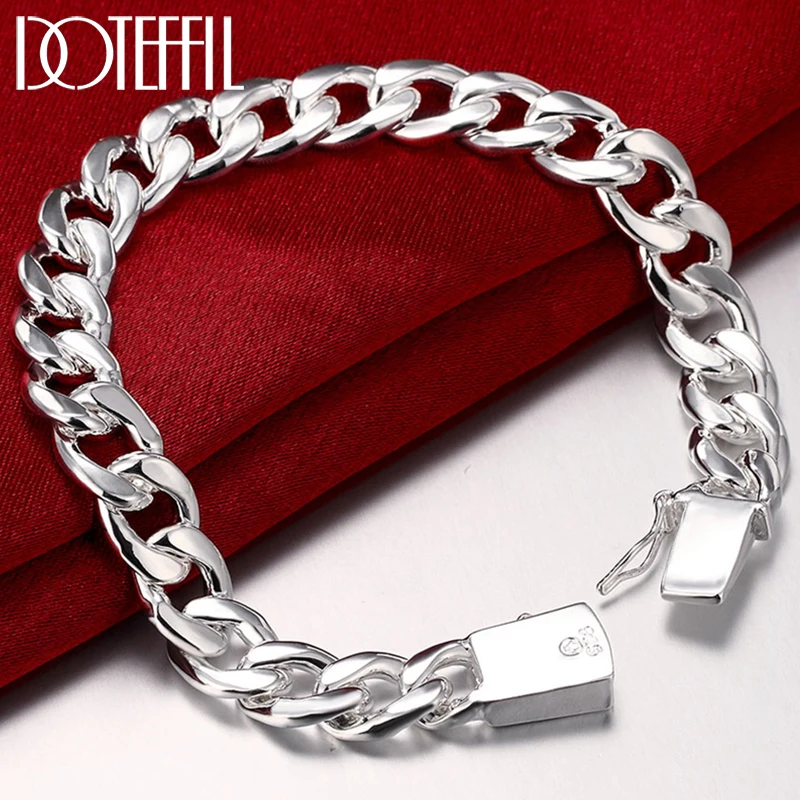 DOTEFFIL, серебро 925 пробы, 10 мм, цепочка, боковая квадратная пряжка, браслет для мужчин и женщин, свадебные вечерние ювелирные изделия для помолвки