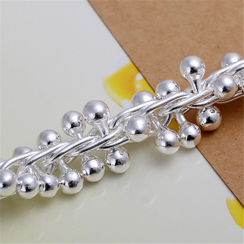 Женский гладкий браслет из серебра 925 пробы с бусинами винограда
