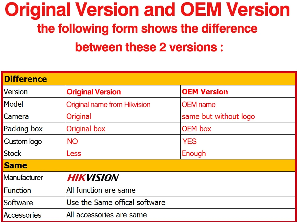 "OEM Version" means the It's OEM from DS-2CD2385FWD-I .