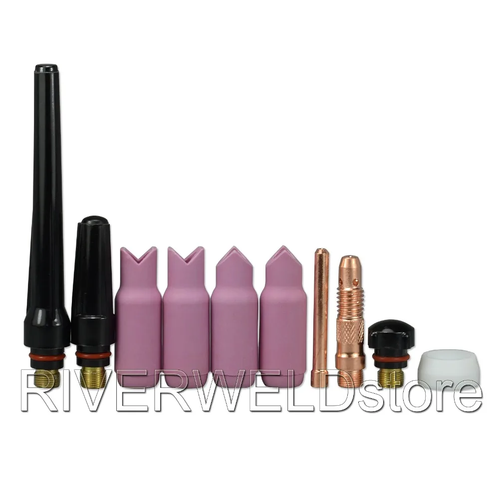 Количество посылка: 10 шт.2 шт. внутри 90o глинозема керамическая чашка2 шт снаружи 90o глинозема керамическая чашка1 шт 10N25 1/8 & ø3.2мм Цанга1 шт. 10N28 1/8 & Ø3.2mmCollet Body1 шт 57Y02 длинная задняя крышка1 шт. 57Y03 средняя задняя крышка1 шт. 57Y04 короткая задняя крышка1 шт. TIG прокладка 18CGЭтот комплект для корпуса и Коллет подходит для всех факелов с воздушным охлаждением серии 17 и 26 и факелов с водяным охлаждением серии 18, включая PTA-17, PTA-18 и PTA-26, Miller Diamondback DB17,DB18 и DB 26 факелов, наряду со сварочным ремеслом WP-17, WP-18 и WP-26 факелами.