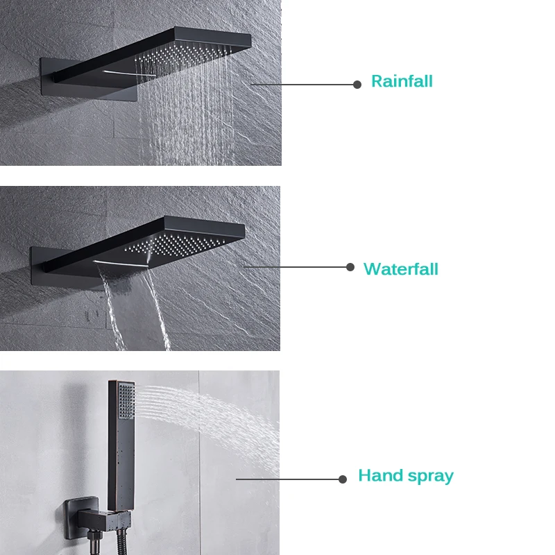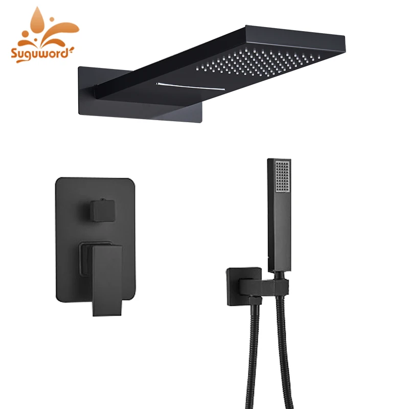 Suguword матовый черный скрытый смеситель для душа комплект 3-сторонний выход осадков водопад смеситель горячей и холодной воды краны для душа Системы настенный