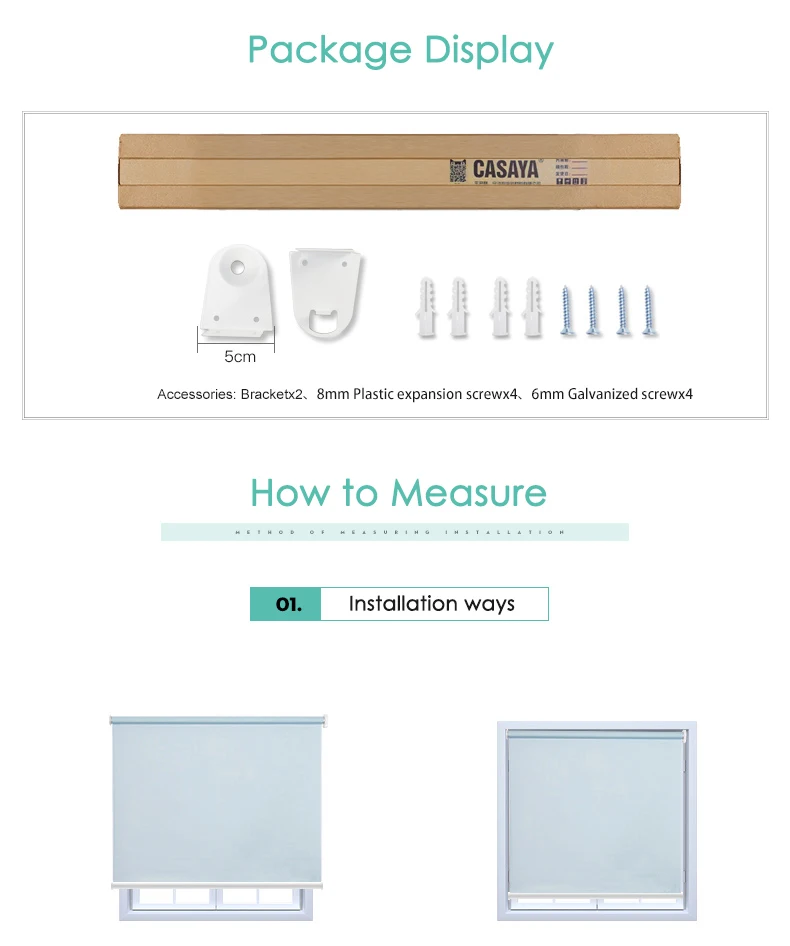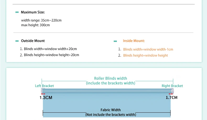 2. Ширина заказных жалюзи = ширина ткани + ширина кронштейнов (3 ~ 4 см).