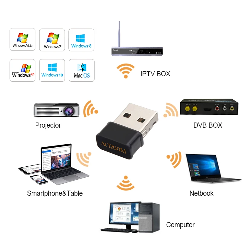 Мини USB Wifi адаптер 1200 Мбитс, двухдиапазонный 2,4 ГГц5,8 ГГц бе...