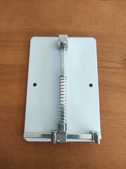 Приехал в Моск.обл. через две недели. Упакован от слова "никак". Но в принципе ломаться там нечему. Платы можно зажимать относительно небольшие. Чтобы посильнее поджать плату пружиной фиксирующий винт надо затягивать сильно, иначе планка сползает. Своих денег стоит. Продавца рекомендую!