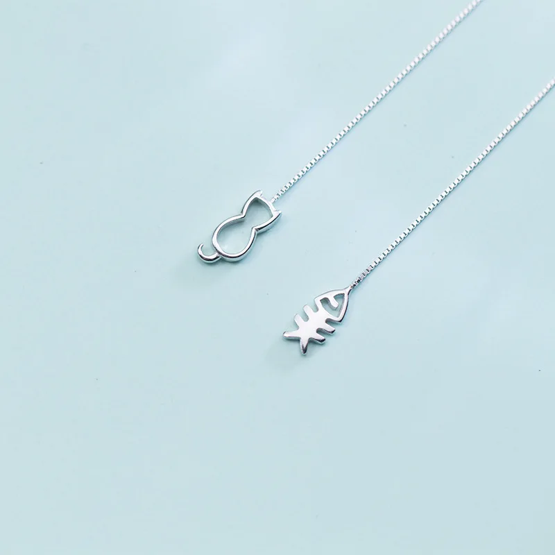 Серьги-подвески женские Асимметричные из серебра 925 пробы с котом