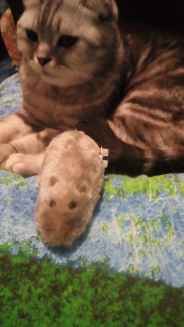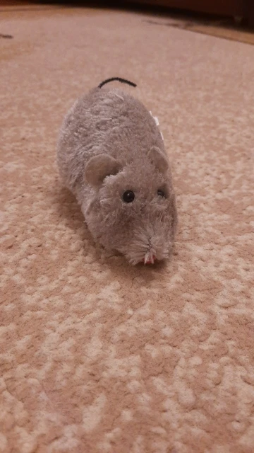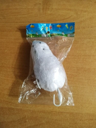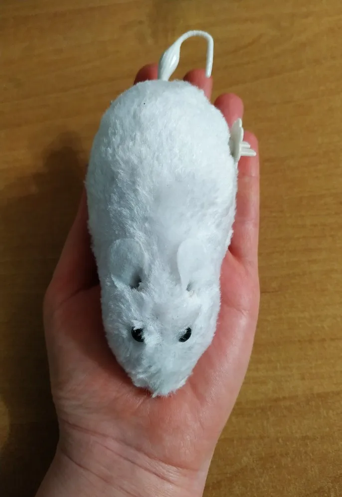 Шикарная мышь, скорее даже мышище! Коты (мейн-кун и тайский кот) в восторге. Играют, таскают ее в зубах. Из недостатков: прочность хвоста и заводной механизм. Хвост слетел за три дня, а заводной механизм заедает, мышь «бегает» через раз. В то же время за 88 рублей и доставку в две недели, я считаю, что качество отличное. Основную функцию игрушка для котов выполняет: она им нравится, они с ней играют. К тому же мышка заметная, не теряется как другие (более мелкие игрушки). С продавцом не общались, товар отправили быстро. Посылка пришла вместе с другими посылками, все в целости. К покупке однозначно рекомендую, особенно, если у Вас крупная порода кошек.