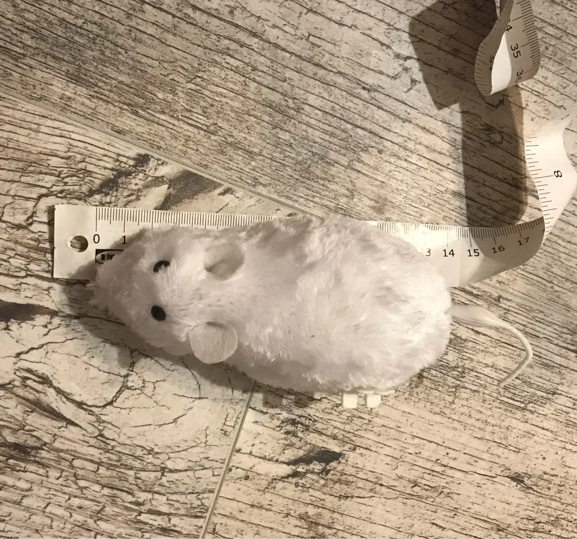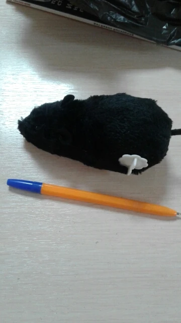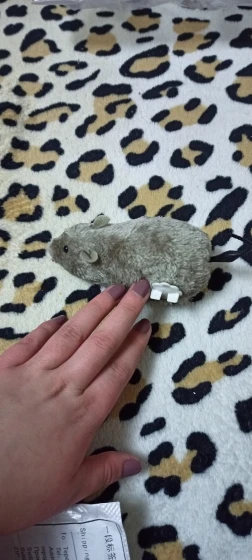 Смешная мышь, размер внушительный ,едет быстро,ещё быстрее крутит хвостиком,кошка сразу заинтересовалась,спасибо за очень быструю доставку.