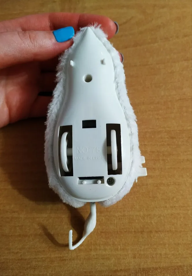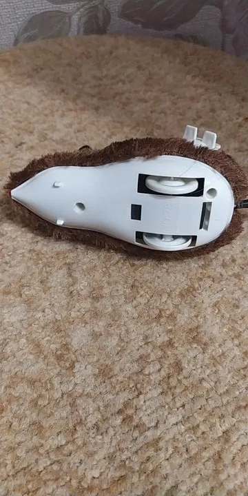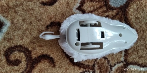 цвет приходит рандомно) думала, что будет коричневая, а пришла белая мышка, работает хорошо, кошке нравится)