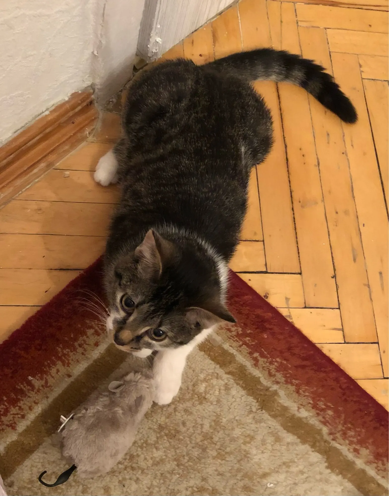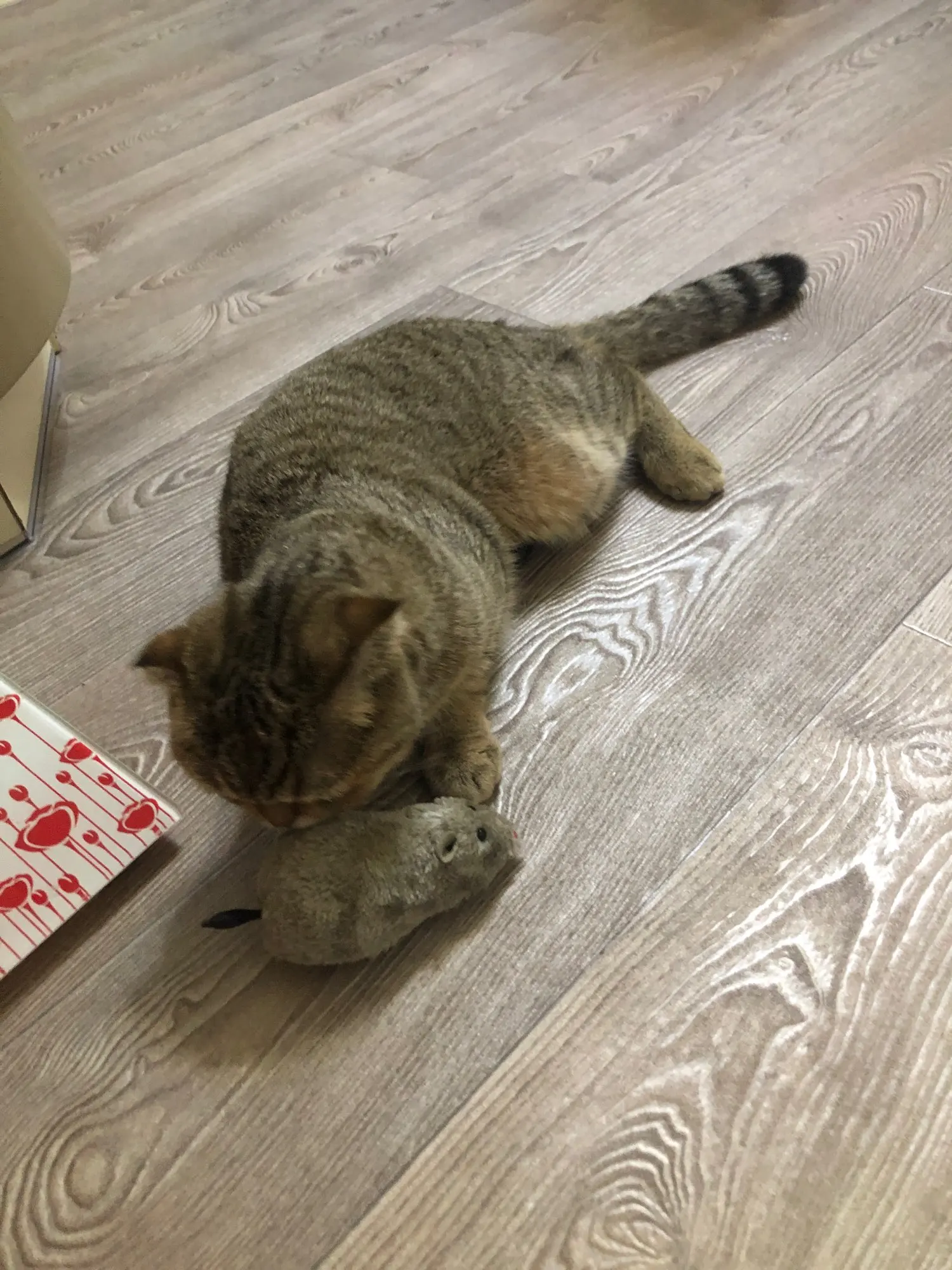 Игрушка - огонь. #Кошка играется. Завода хватает метров на 5-6 максимум. Этого более чем достаточно.Хвост при движении крутится, отваливается. Мышь реально большая, благодаря этому она не заигрывается под мебель и всегда можно легко найти