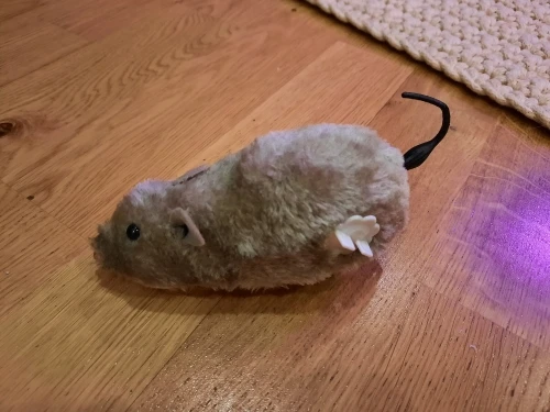 Отличная быстрая мышка с заводом . Коты довольны, ездит по ковру не очень долго, но по ламинат или голому полу лучше.