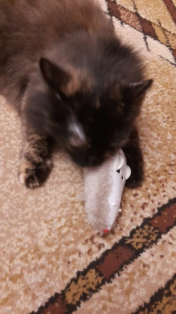Недорогая и качественная игрушка для кошки, кошка сразу заинтересовалась и стала играть с ней. Мышь довольно большая и лучше всего будет бегать на ровном полу.